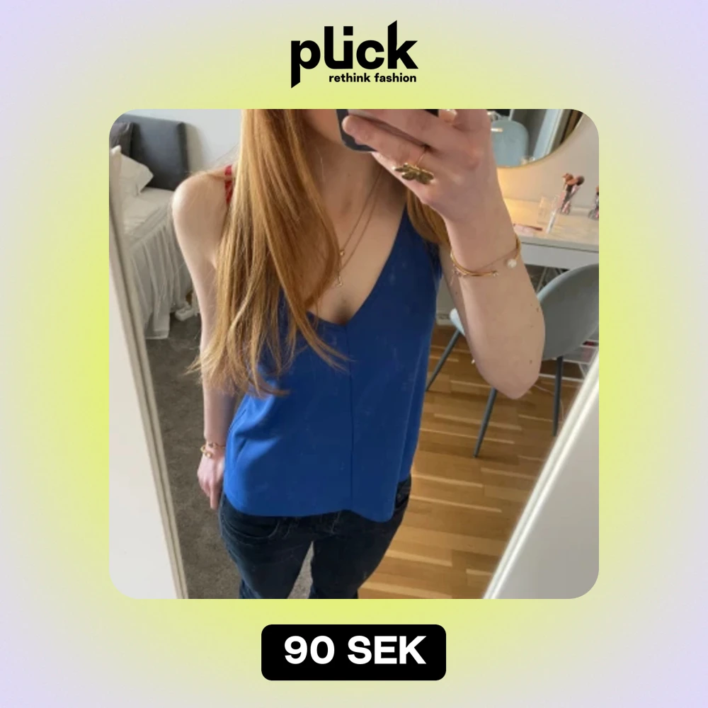 Blått linne från zara, perfekt till sommaren! Banden är korsade i ryggen och jag har sytt upp de själv där bak💗