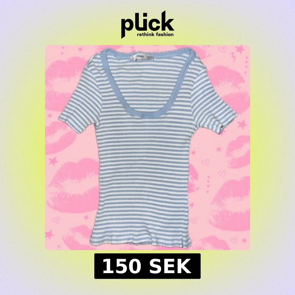 Supersöt ribbad topp från MNG i ljusblått och vitt med smala ränder. Modellen har korta ärmar, rundad djup ringning och sitter figurnära. Perfekt för dig som gillar en enkel men ändå trendig look.