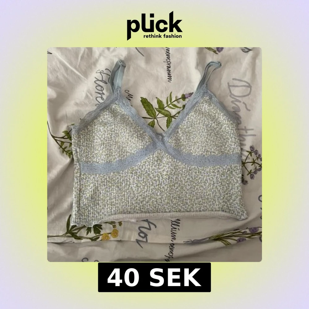 Söt linnetopp med blommigt mönster i ljusblått och grönt. 🩷