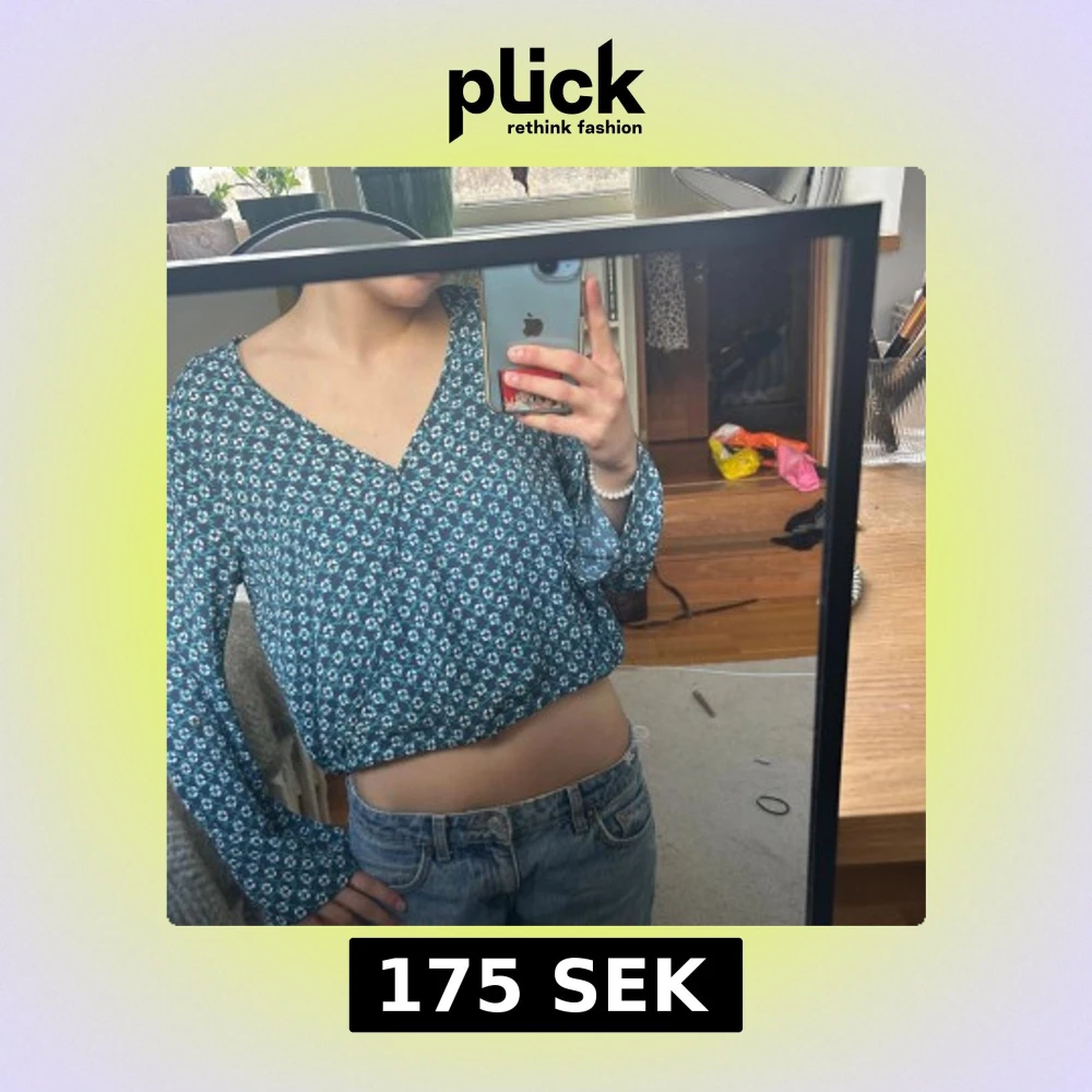 Säljer en söt blå croppad blus med små vita och turkosa blommor. Blusen har v-ringning och är jätte fin att bära både fram och bak. Materialet känns lätt och luftigt, perfekt för fina middagar och sommaren.