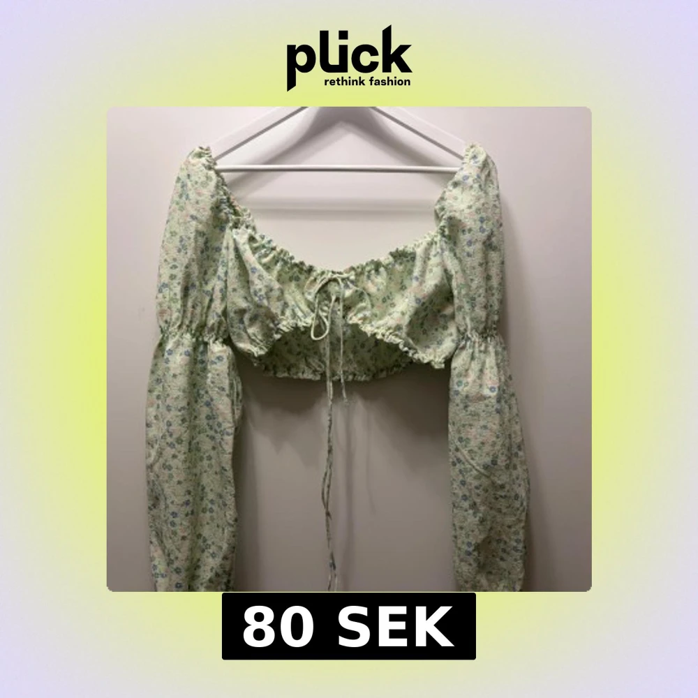 Blommig blus i ljusgrön med små blommor i rosa och blått. Blusen har långa ärmar och en söt knytning framtill. Perfekt för en somrig look 💖