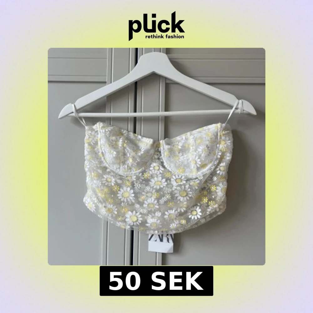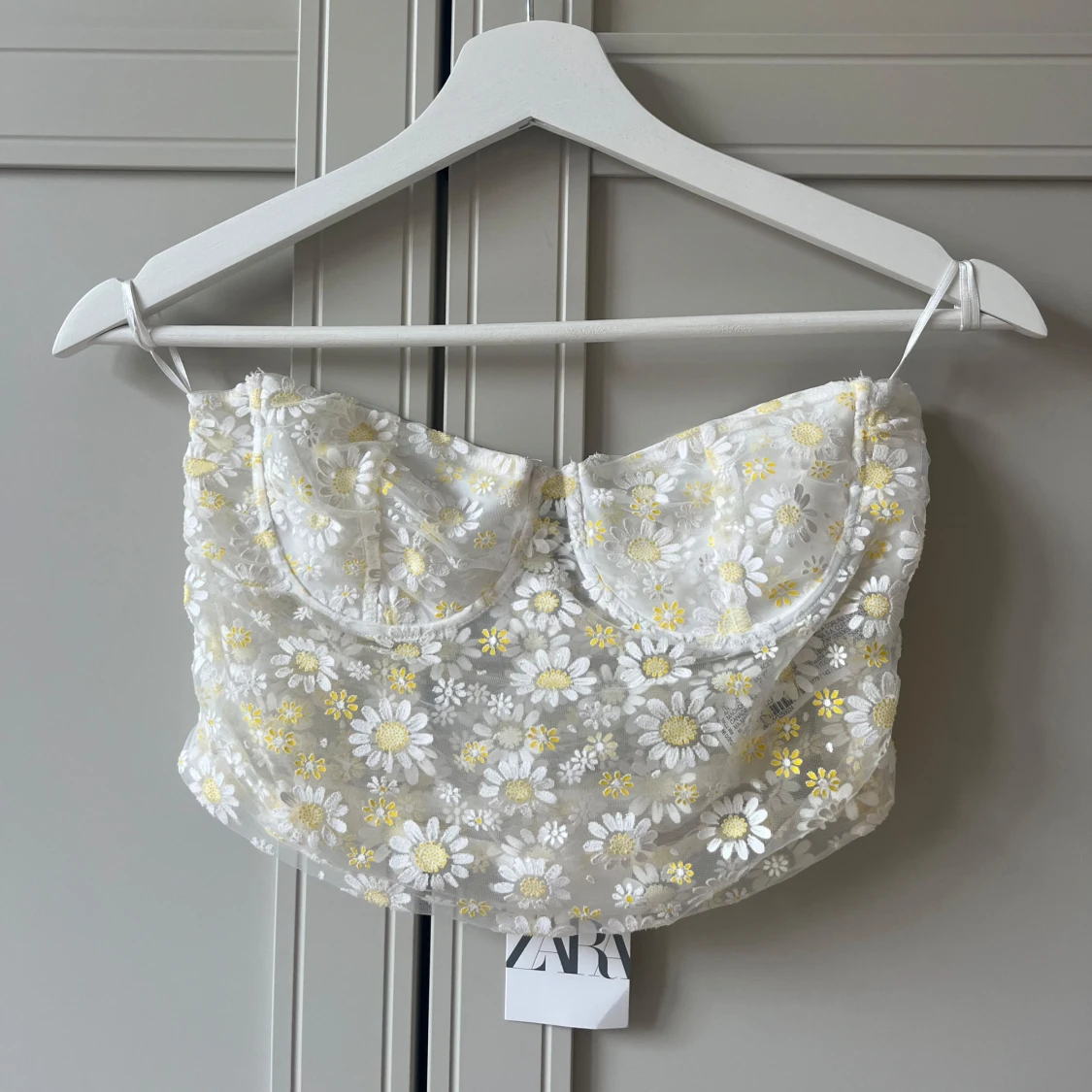 Superfin vit korsettopp från Zara med broderade blommor i vitt och gult. Helt oanvänd!