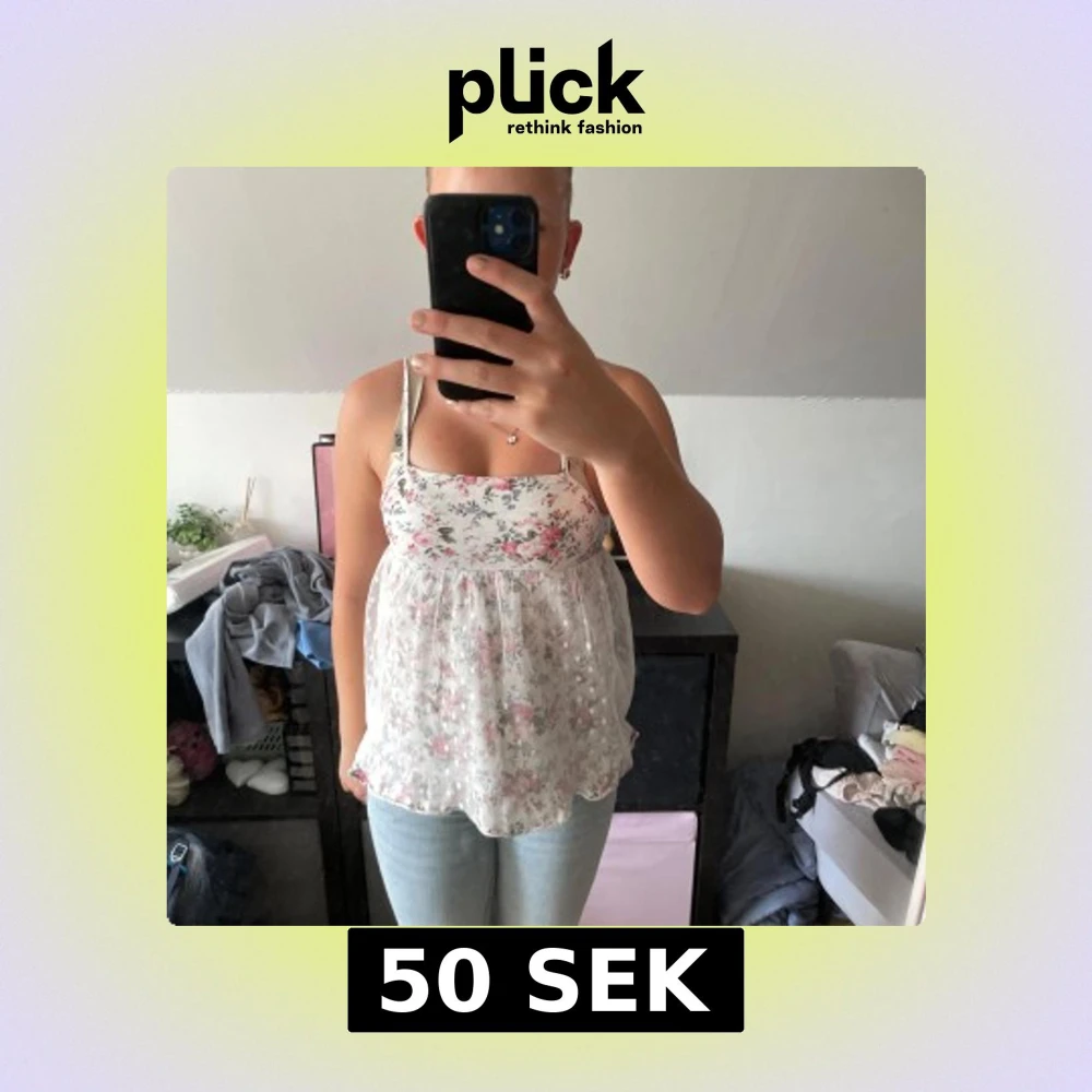 Supersöt linnetopp med blommigt mönster i vitt, rosa och grönt från WeTweens(Kappahl). Toppen har tunna axelband och ett luftigt, lätt material som känns perfekt för varma dagar. Volangkant nertill och romantisk vibe. Perfekt att styla med jeans eller shorts!