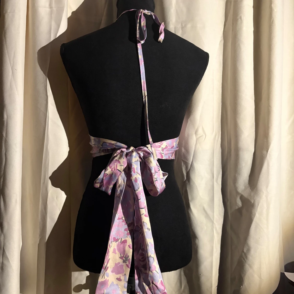 Säljer en blommig topp som man kan knyta både vid nacken och vid ryggen. För mig som har c/D kupa så får man lite av en side boob men den sitter ändå väldigt fint. Väldigt bra för sommaren. Köpt men knappt använd. Den är en S men gick på mig som är M