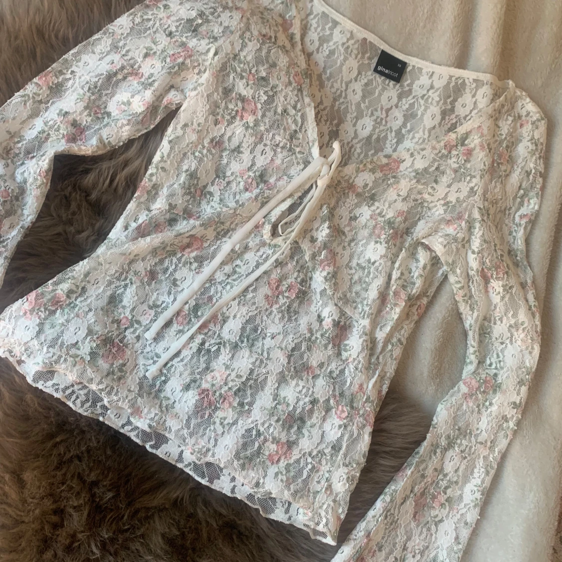 Romantisk blus från Gina med v urringning och utsvängda armar! Perfekt nu till sommaren! (Aldrig använd)