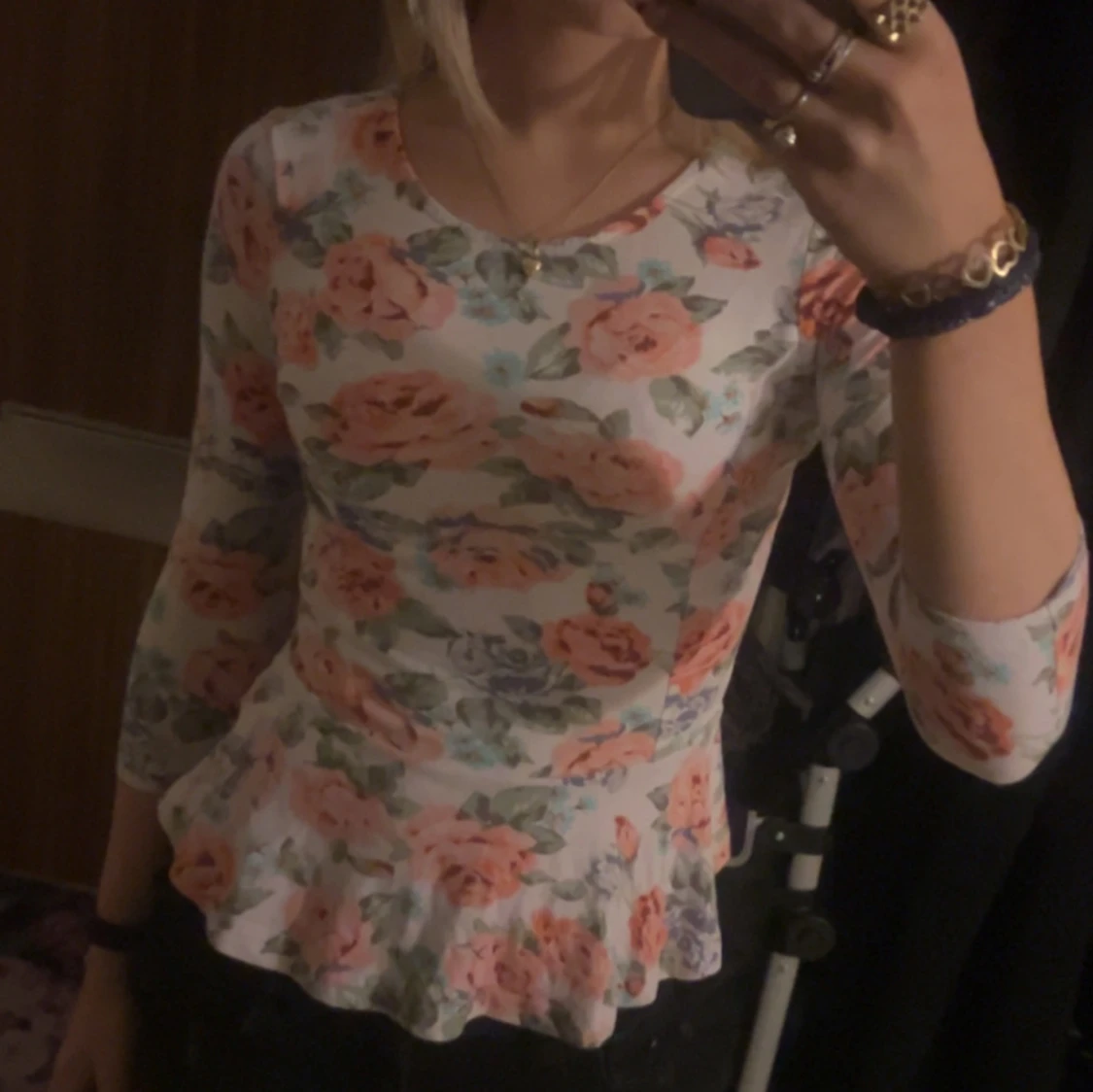 Blommig top storlek S