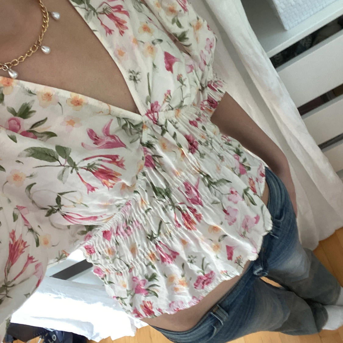 Supersöt blommig blus från H&M perfekt till sommaren. Sitter snyggt och är inte använd så mycket i st M men passar även S💗