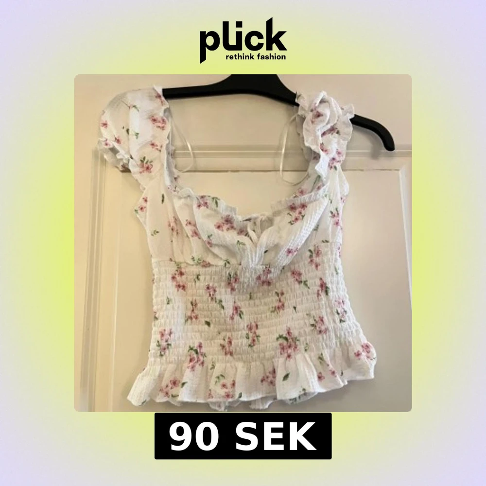 Supersöt blommig blus från Gina Tricot i vit med rosa och gröna detaljer. Blusen har volangkant, smockad midja, knyt framtill och puffiga axlar. Materialet är mjukt och lätt, perfekt för varma dagar. Säljer då den inte kommer till användning!