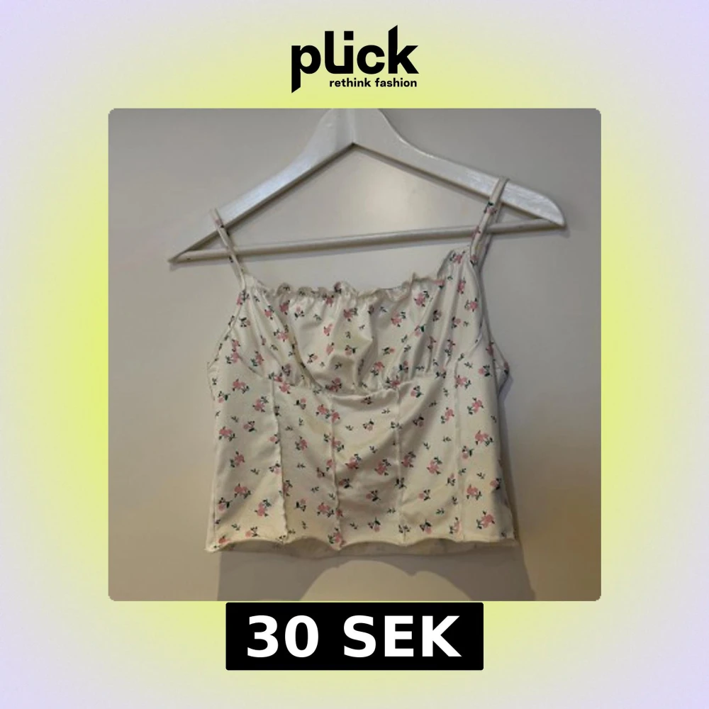 Söt vit linnetopp med små blommor i rosa och blått. Toppen har smala axelband och en lätt rynkad detalj vid halsringningen. Perfekt för varma sommardagar! Linnet är från shein