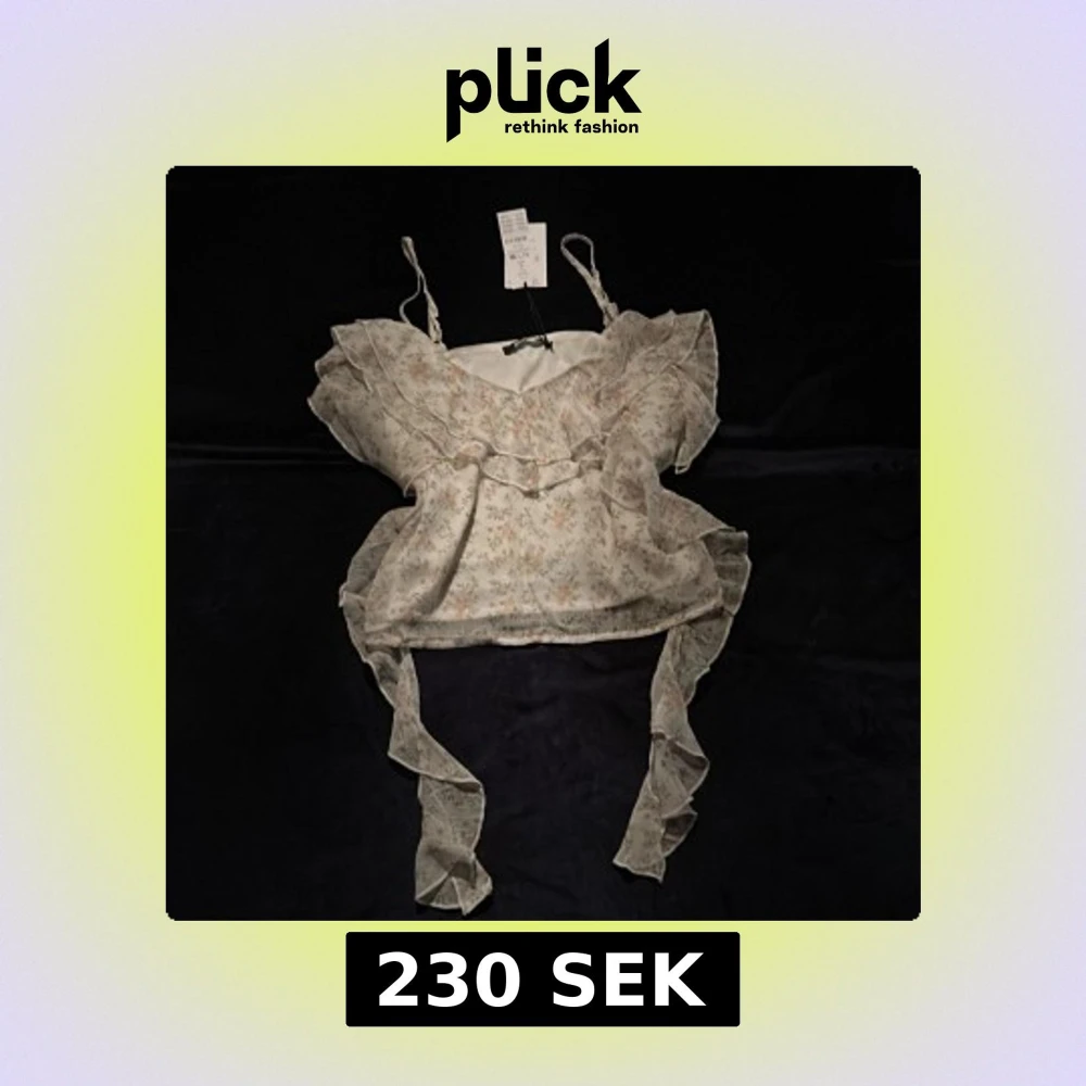 Supersöt blommig blus från Gina Tricot i ljus färg med volangdetaljer längs axlar och sidor. Topp med smala axelband, v-ringning och långa volanger som hänger ner. Aldrig använd, prislappen sitter kvar. Säljer pga kommer inte till användning. Den kosta 329kr först, säljer för 230kr.😊❣️