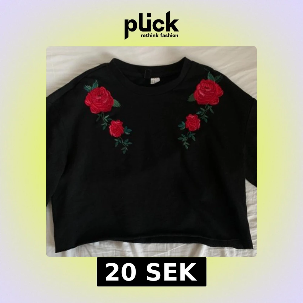 Fin topp med trekvartsärm och broderade rosor! Toppen är ganska oversized och lite croppad. I bra skick, bara använd 1-2 gånger. Pris kan diskuteras 🌹