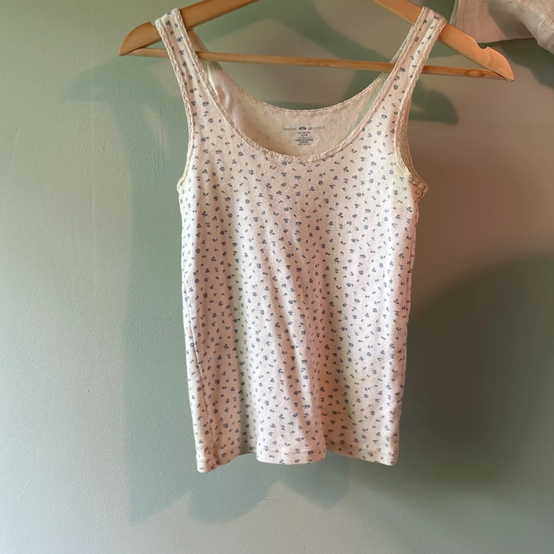 Gulligt linne från Brandy Melville med små blå blommor. Någon missfärgning i armhålorna men inget man tänker på när man har den på sig! Perfekt till sommaren St S