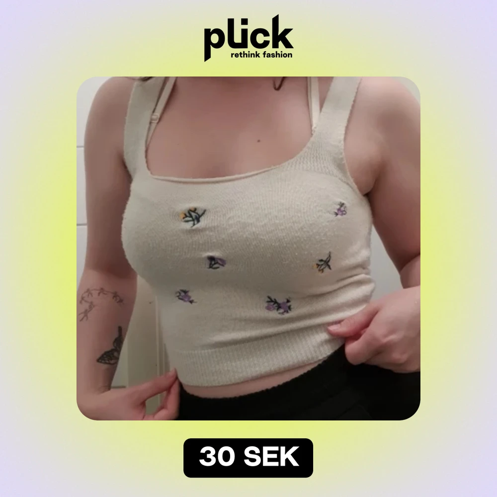 Ett vitt linne med broderade blommor från Bik Bok💖 har älskat detta linne men använder inte riktigt längre. Jag kan MÖTAS upp i sthlm 🧚🏻♀️