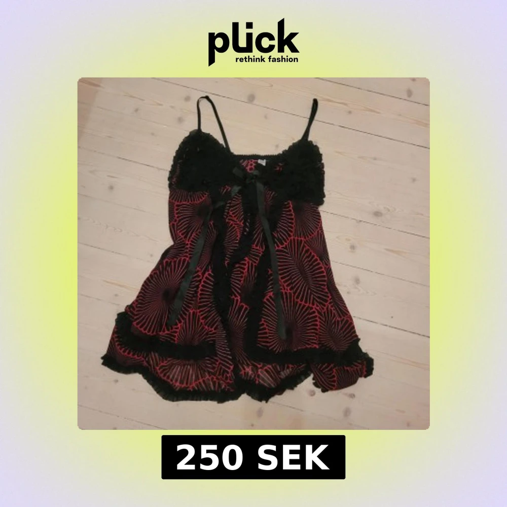 Säljer en snygg linnetopp med tunna axelband, svart och röd/rosa blommig design och volangdetaljer. Toppen har en söt svart rosett framtill och är gjord i ett lätt, transparent material som känns luftigt. Perfekt för dig som gillar unika detaljer och mönster.