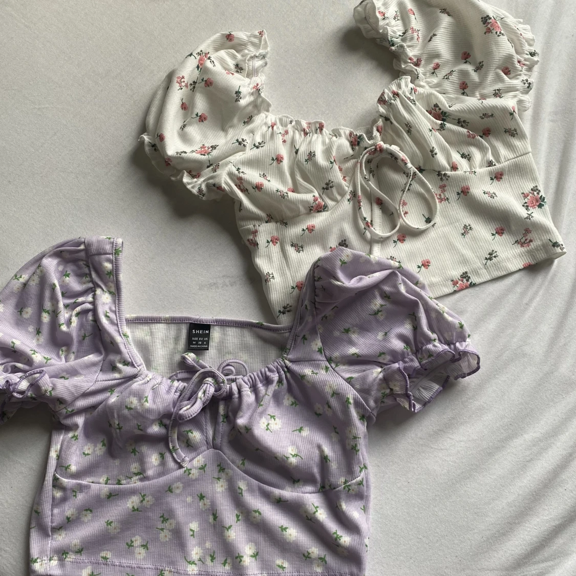Fina sommartoppar från shein, stolek 38 men de är små i storlek skulle jag säga😊 Båda två för 50kr