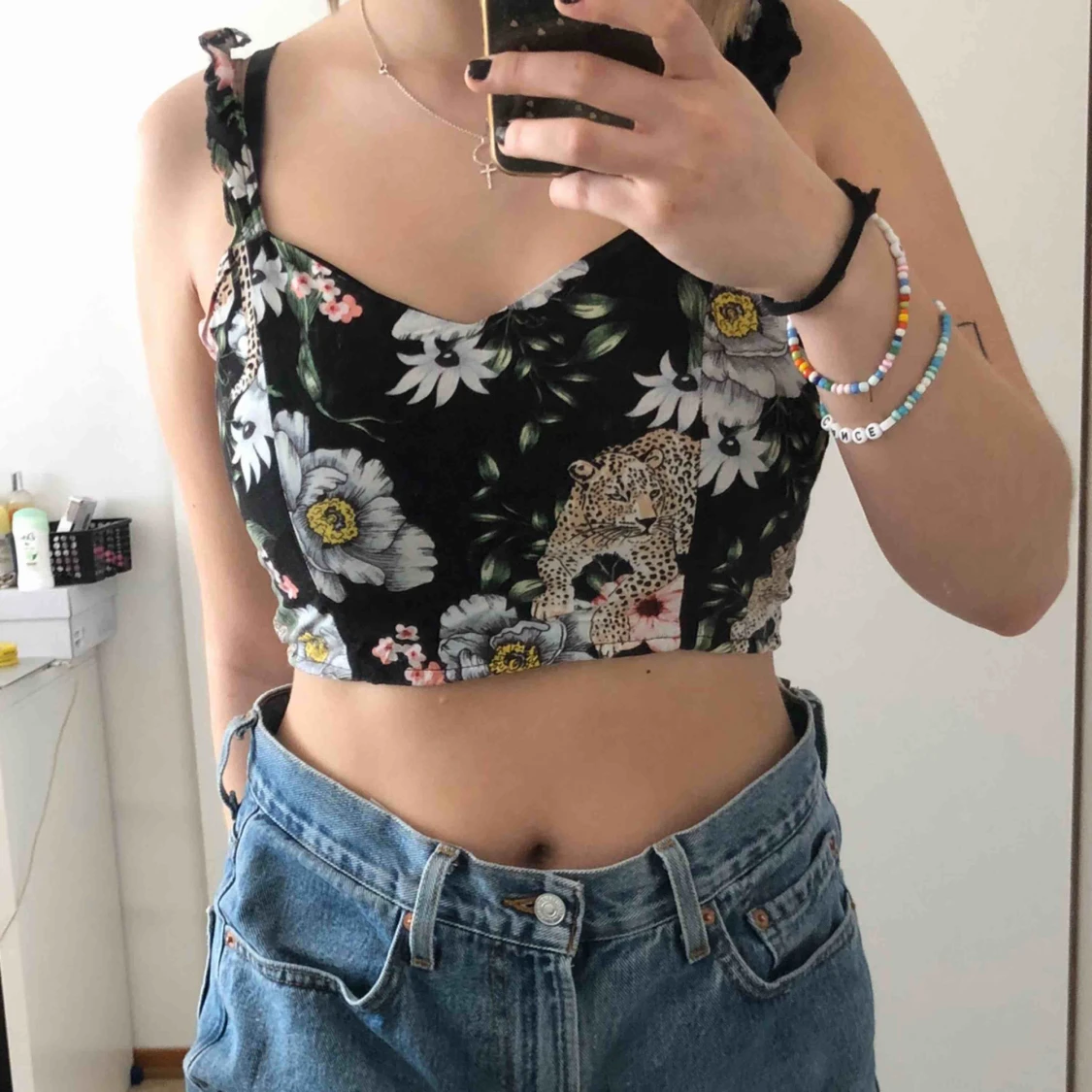 Croppat linne med volanger på axelremmarna köpt från HM 💖10/10 skick, använd fåtal gånger 💖Storlek 40/M, true to size