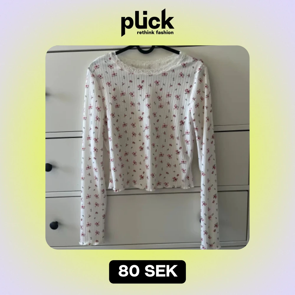 Jättefin långärmad blommigt tröja med spets, använd fåtal gånger - nyskick. Storlek S - L Säljer för - 80kr