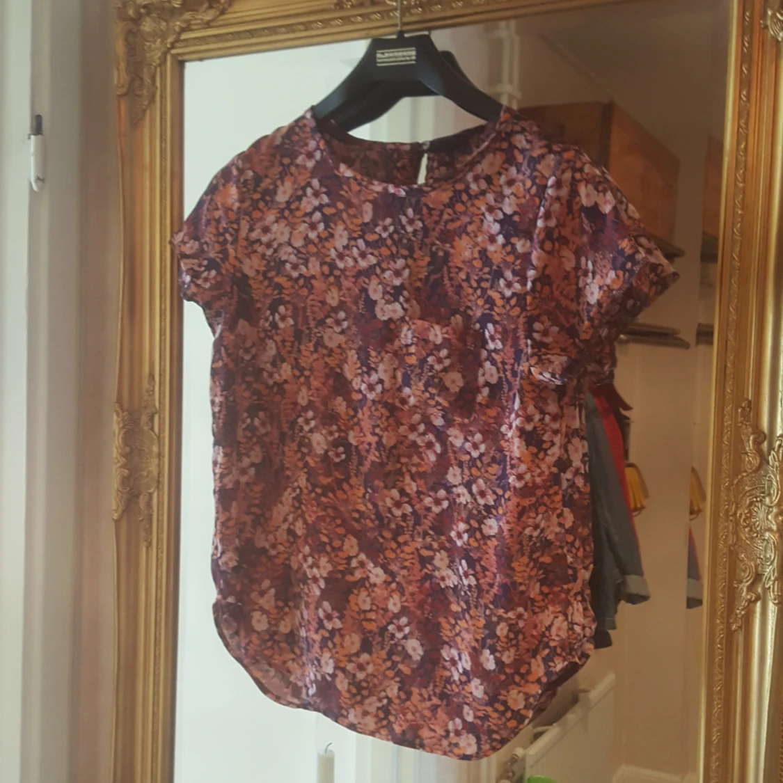 Fin blus t-shirt ifrån H&M. Den knäpps i ryggen med en liten knapp och har en liten ficka framtill. Sömmarna har släppt i ärmarna men inget jag har stört mig på men därav priset. Frakt tillkommer annars kan jag mötas upp i Örebro.