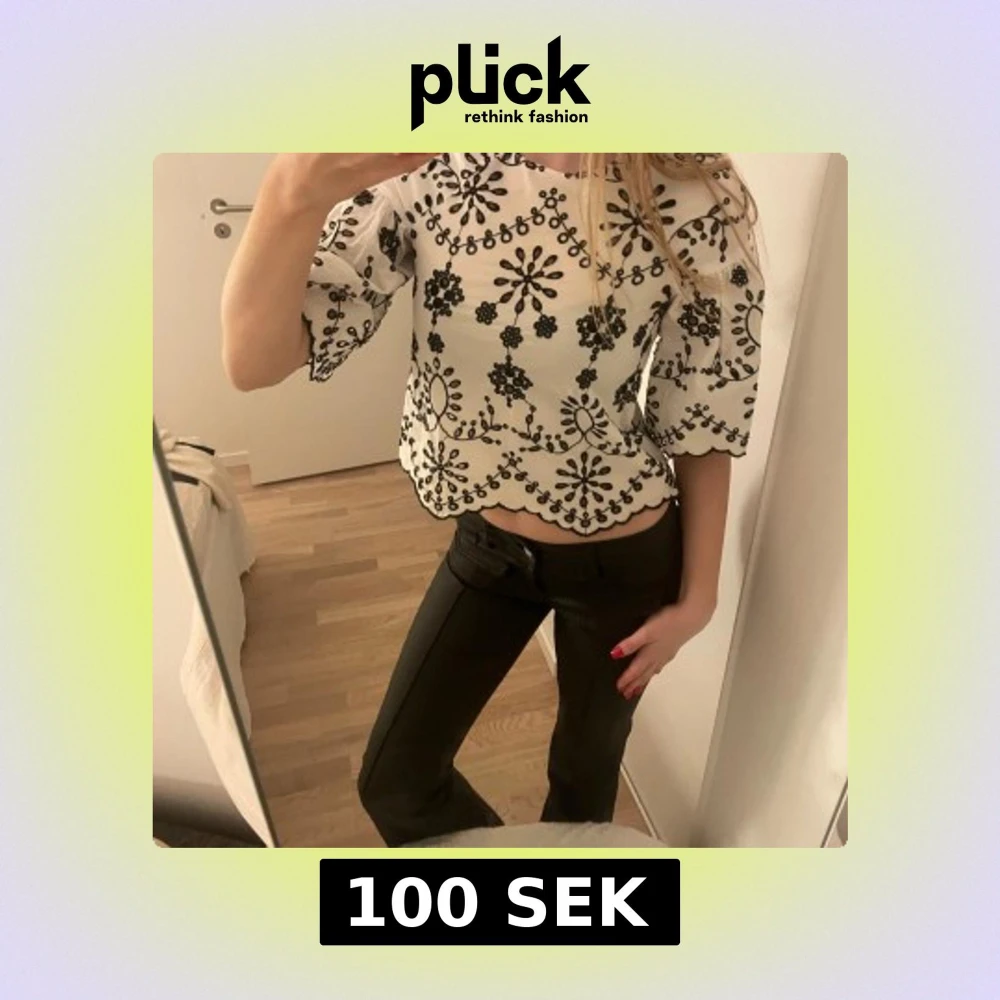 Söt vit blus från Zara med trekvartsärm, svart broderi