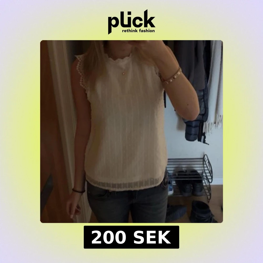 Säljer en söt vit blus med spetsdetaljer vid ärmarna. Perfekt till vardag, fest, sommardag. Kommer tyvärr inte till användning längre. Inga defekter eller liknande!! Skriv för fler frågor💕💕
