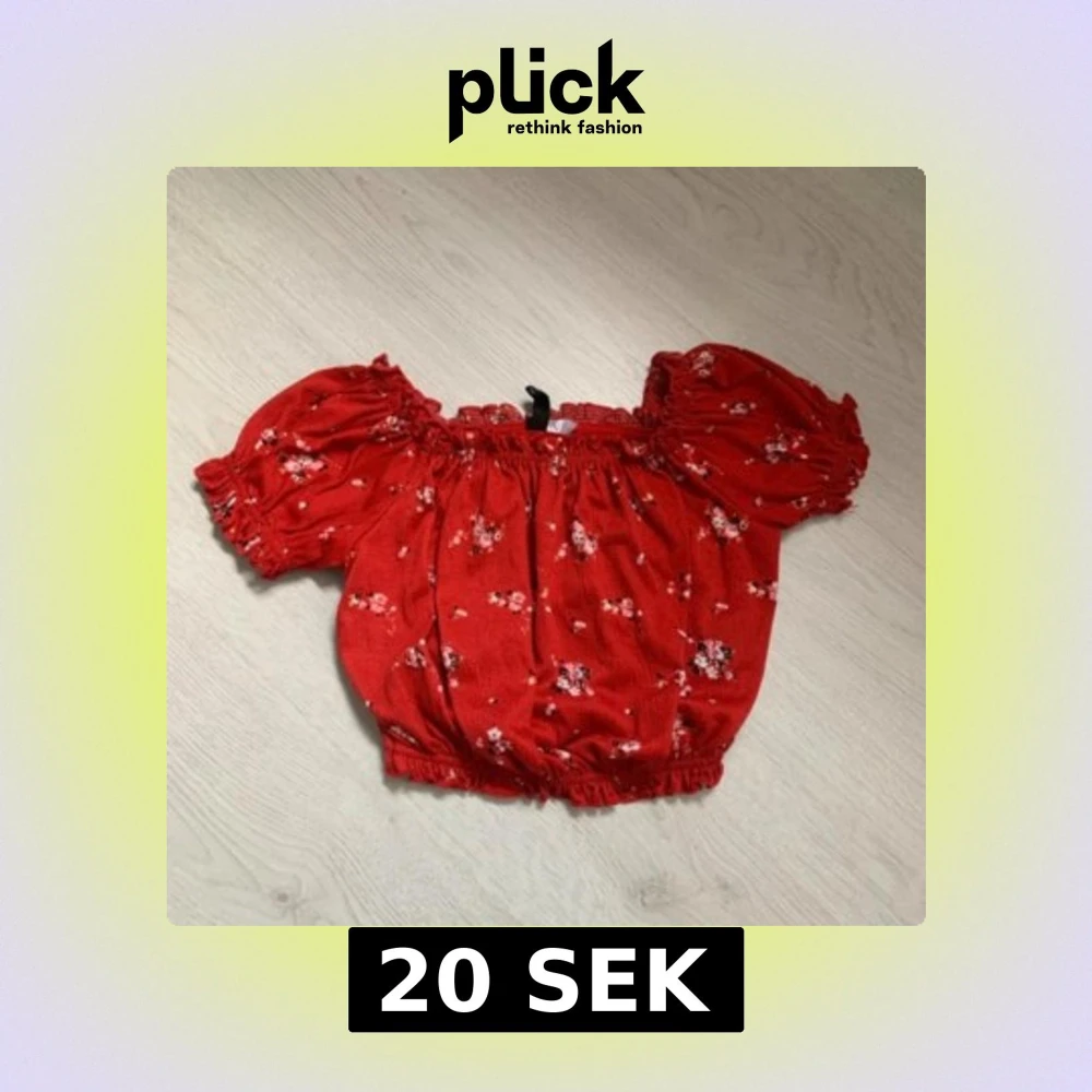 Säljer en söt röd offshoulder topp med blommigt mönster. Toppen har korta puffärmar och elastiska kanter för en bekväm passform. Perfekt för sommarens varma dagar!
