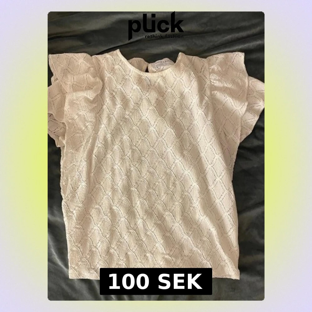 Säljer en söt vit blus från Holly & Whyte med strukturmönster och volangärmar. Blusen har rund halsringning och knapp i nacken. Perfekt till jeans eller kjol för en fräsch look.