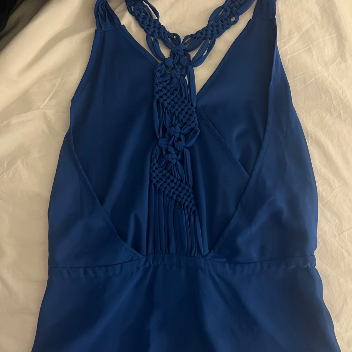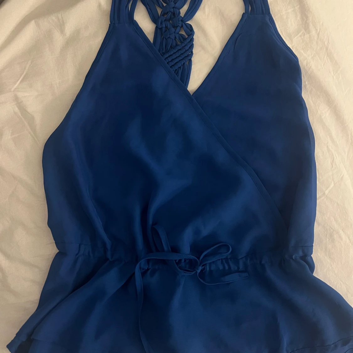Skit snygg blå omlott blus med knytbnad och öppen rygg, skulle va snyggt med en kjol💗