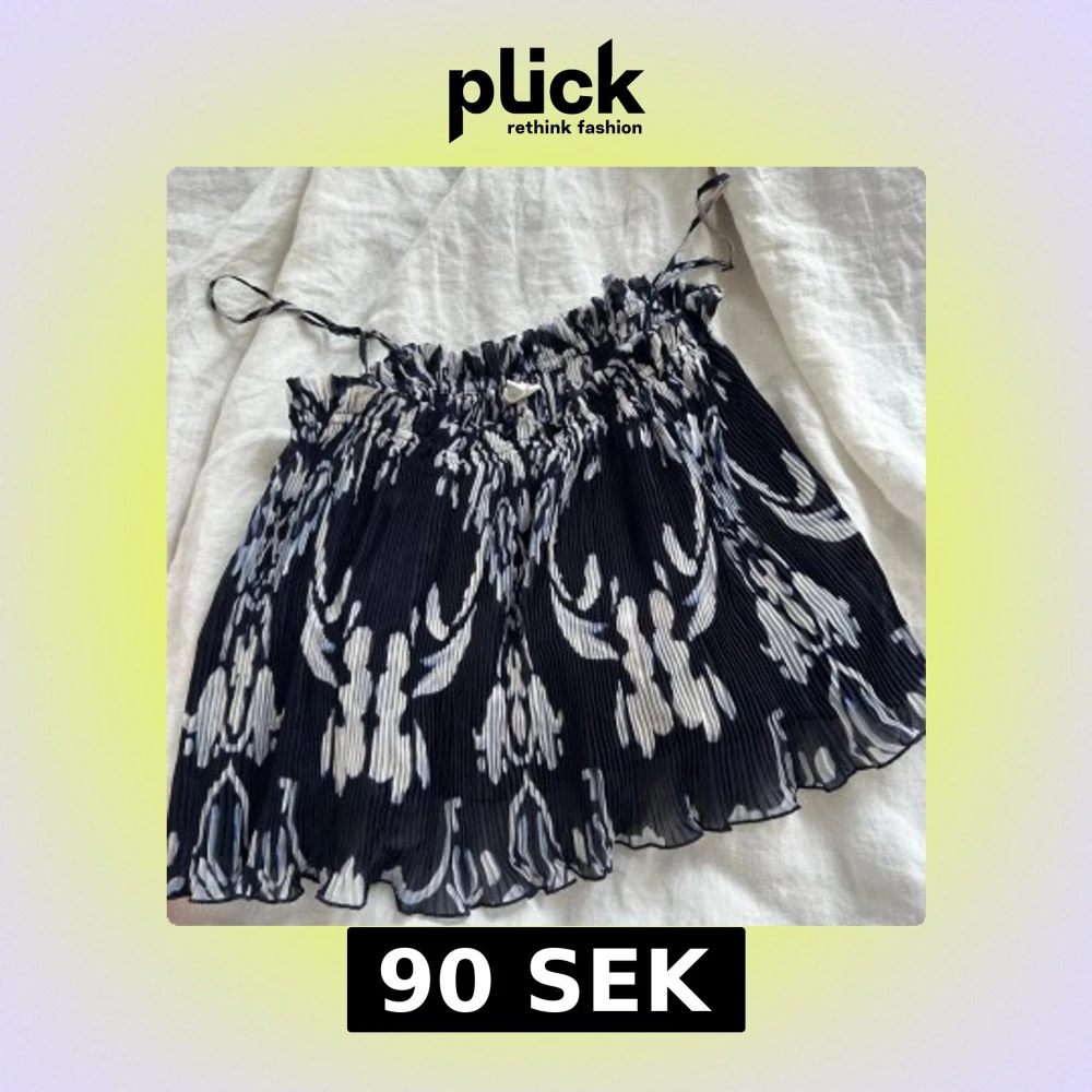 Supersöt plisserad linnetopp med svart och vitt abstrakt mönster. Toppen har smala knytband vid axlarna och en luftig, flowy känsla. Perfekt för varma dagar när du vill ha något lätt och snyggt.