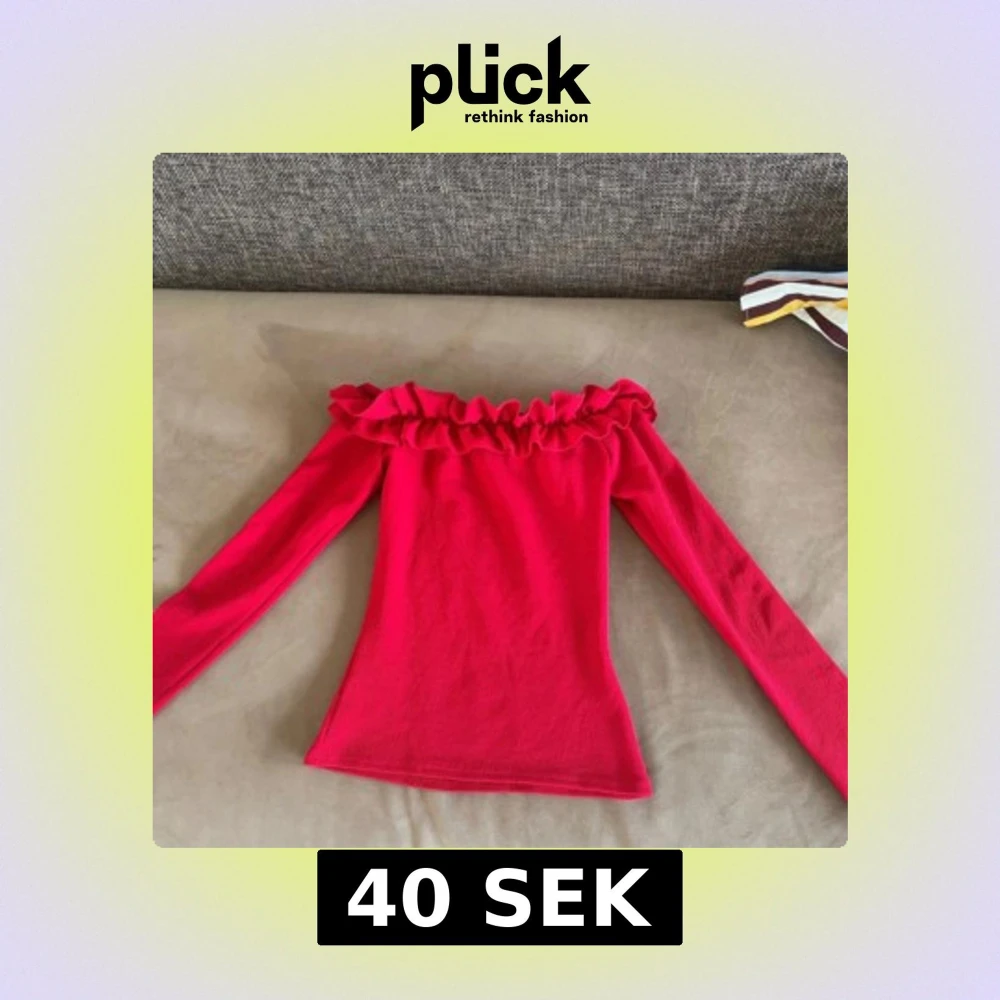 Säljer en snygg röd offshoulder topp från Only Trend i storlek XS. Toppen har långa ärmar och en volangdetalj runt halsringningen. Perfekt för att ge en färgklick till din outfit!
