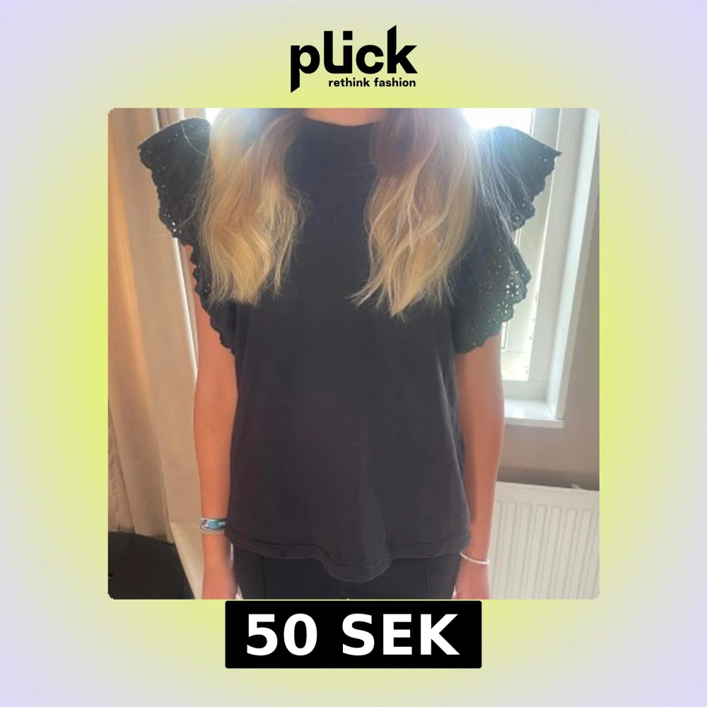 Supersnygg svart blus med volangärmar i broderad spets. Toppen har rund hals och är i mjuk bomull, perfekt för dig som vill ha något extra till outfiten. Ärmlös modell med riktigt coola detaljer på axlarna.