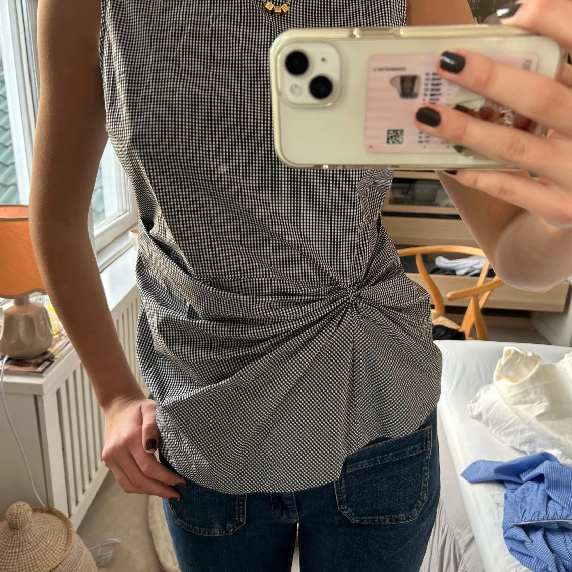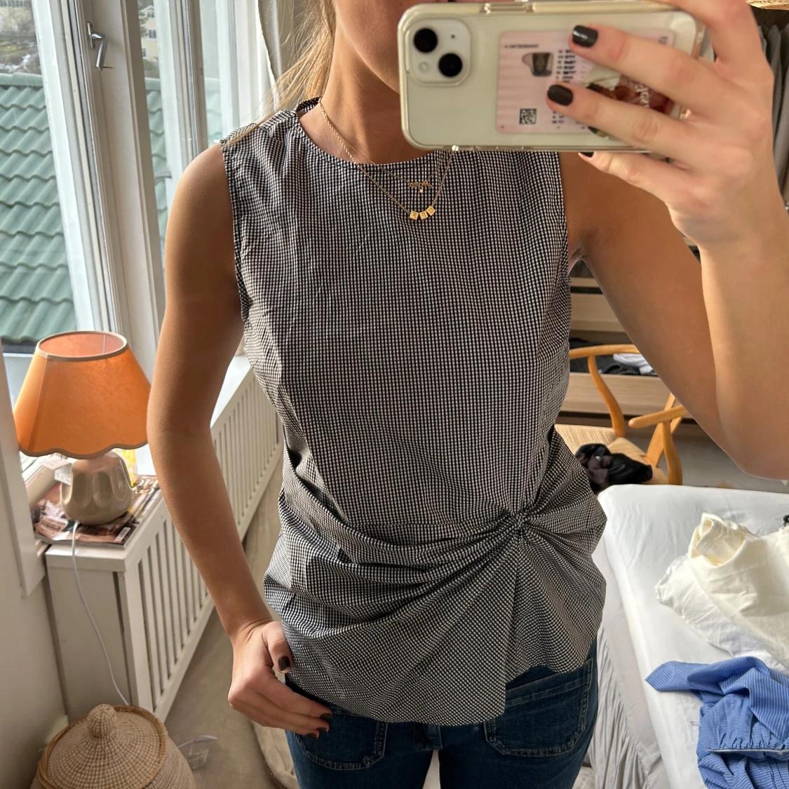 Så fin rutig topp med jättefin detalj! Nyskick