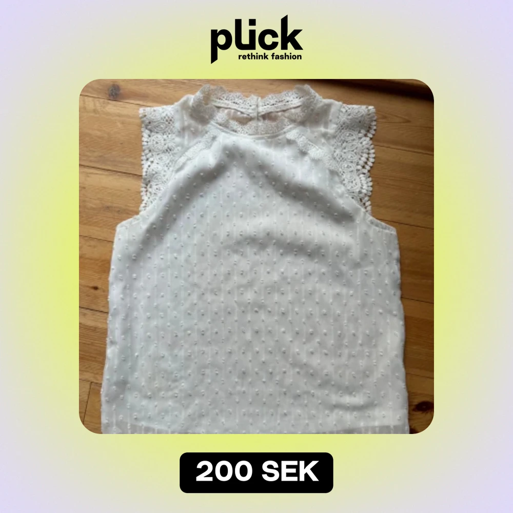 Säljer en superfin vit blus med spetsdetaljer. Den är ärmlös och har ett sött prickigt mönster över hela tyget. Perfekt under en kofta eller kavaj.