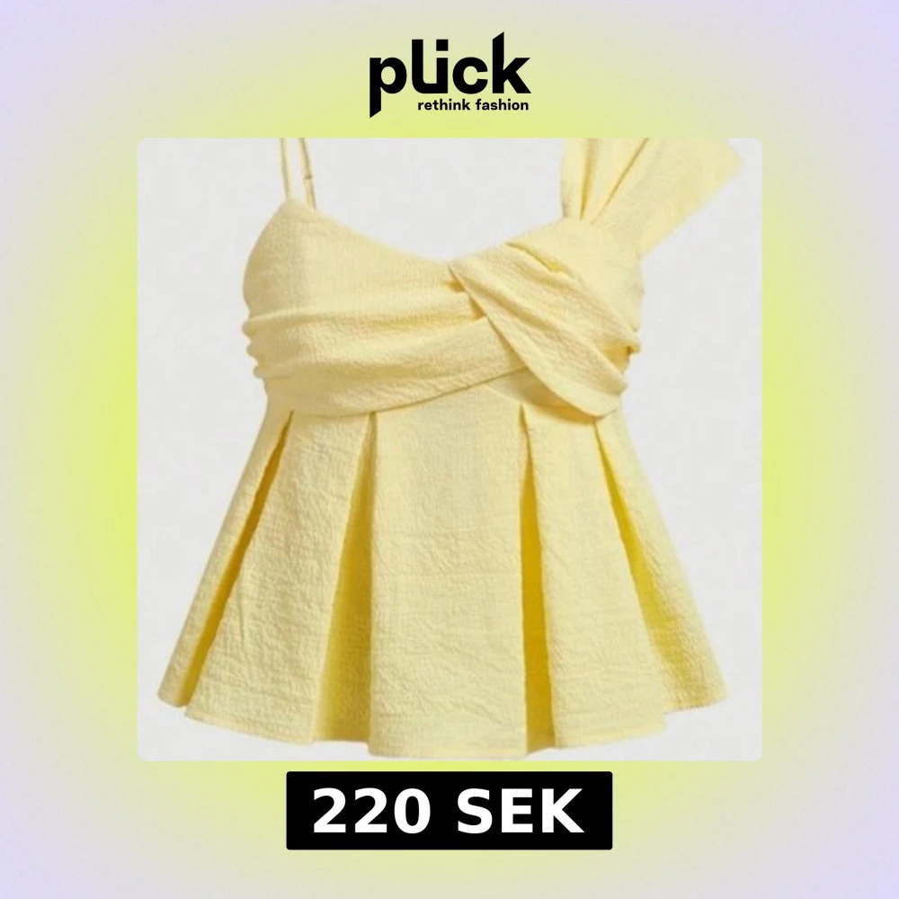 Supersöt ljusgul topp med omlott och twistad detalj framtill. Luftig modell med lätt utställd form och veckad nederdel. Perfekt för varma dagar och ger en fräsch vibe till din outfit.