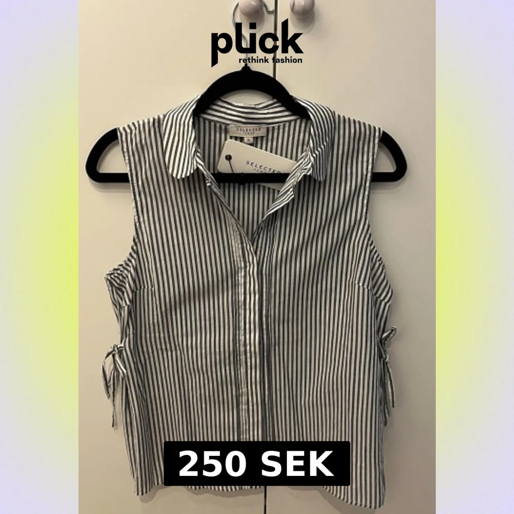 Jättefin blus med randigt mönster och knyte på sidorna.