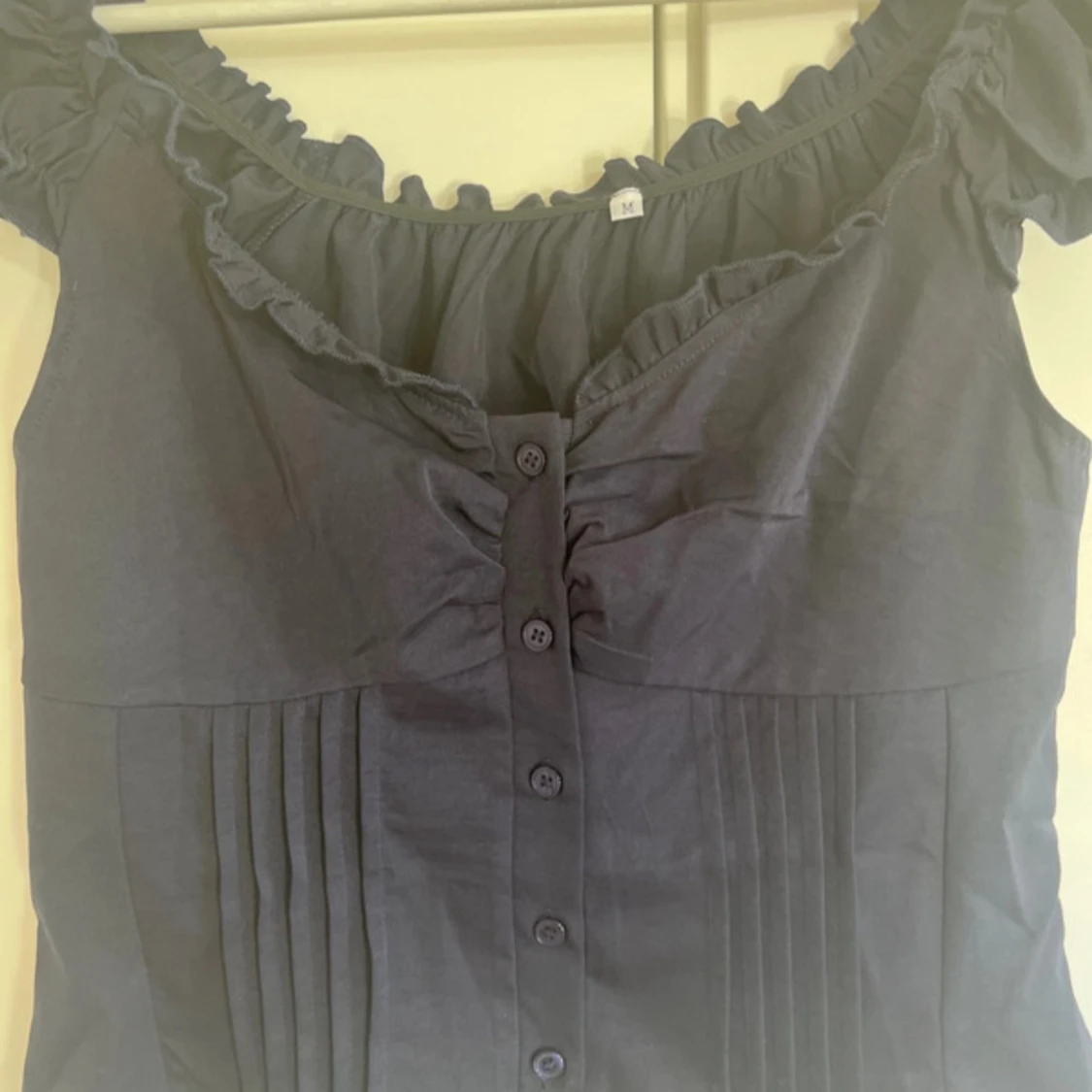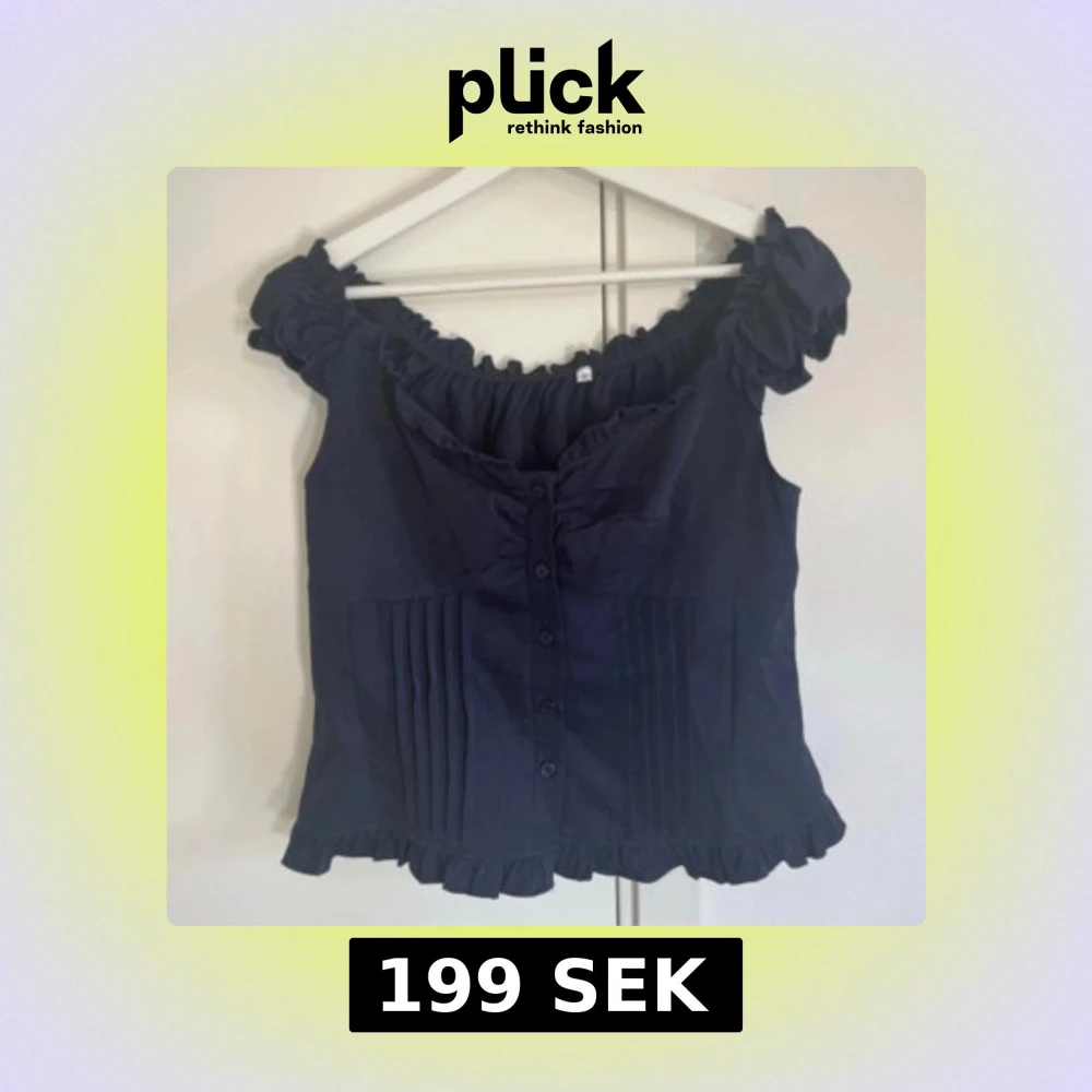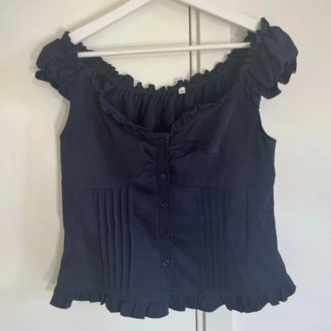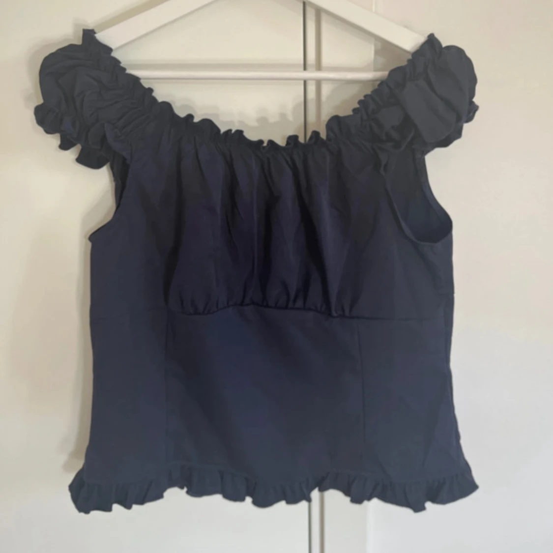En jätte söt marinblå offshoulder topp i strl M. Använd en gång och är i mycket bra skick!