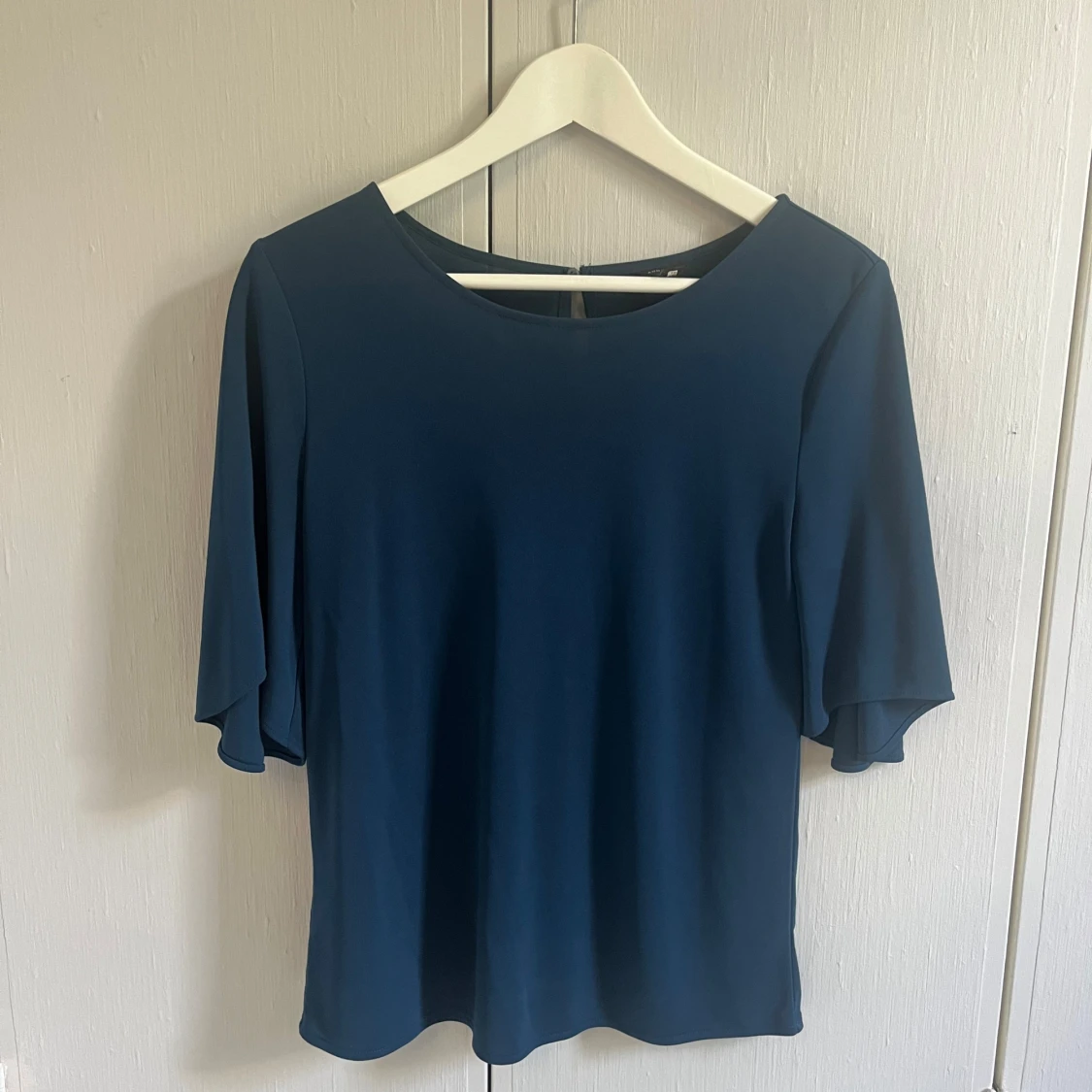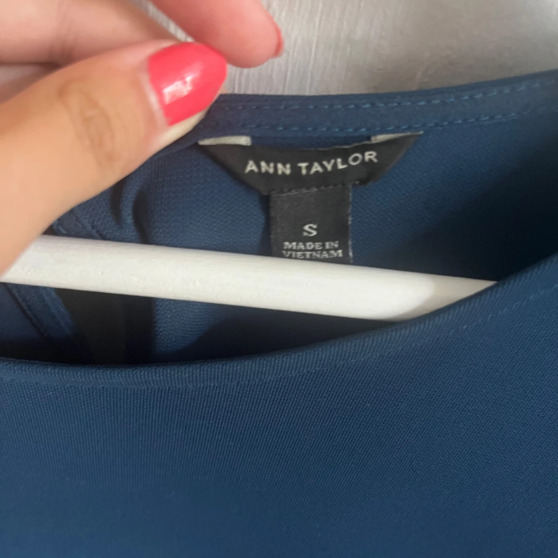 Säljer en stilren mörkblå blus från Ann Taylor i storlek S. Blusen har en enkel och clean design med rund halsringning och vida, halvlånga ärmar. Perfekt att matcha med jeans eller kjol för en snygg look.🩵 Den är köpt secondhand men inga tecken på användning