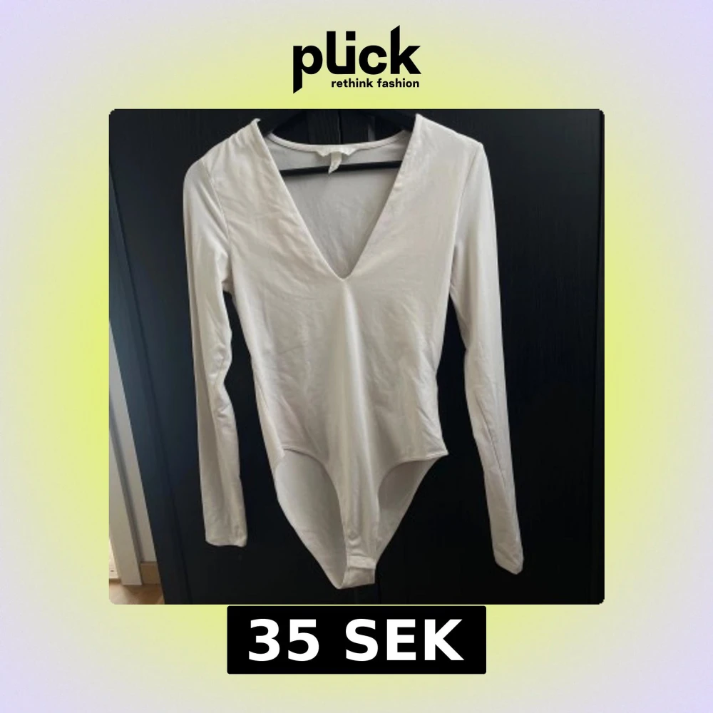 En långärmad body från H&M. Materialet är mjukt o väldigt bekvämt, även lite stretchigt.🤍 Jag brukar använda den som en vanlig tröja, men det går självklart att knäppa till en body🤍färgen är mer åt det gräddvita hållet