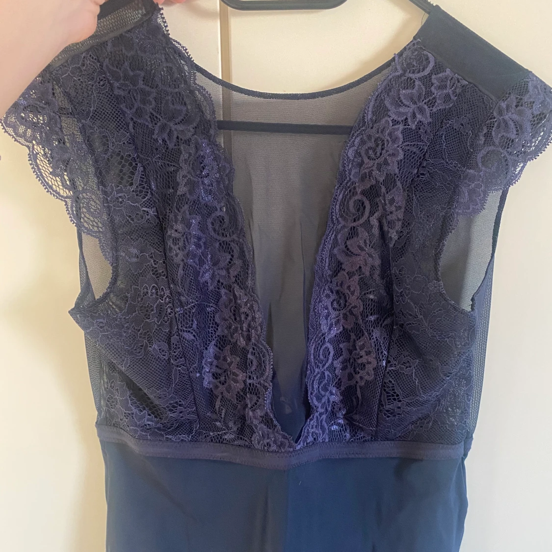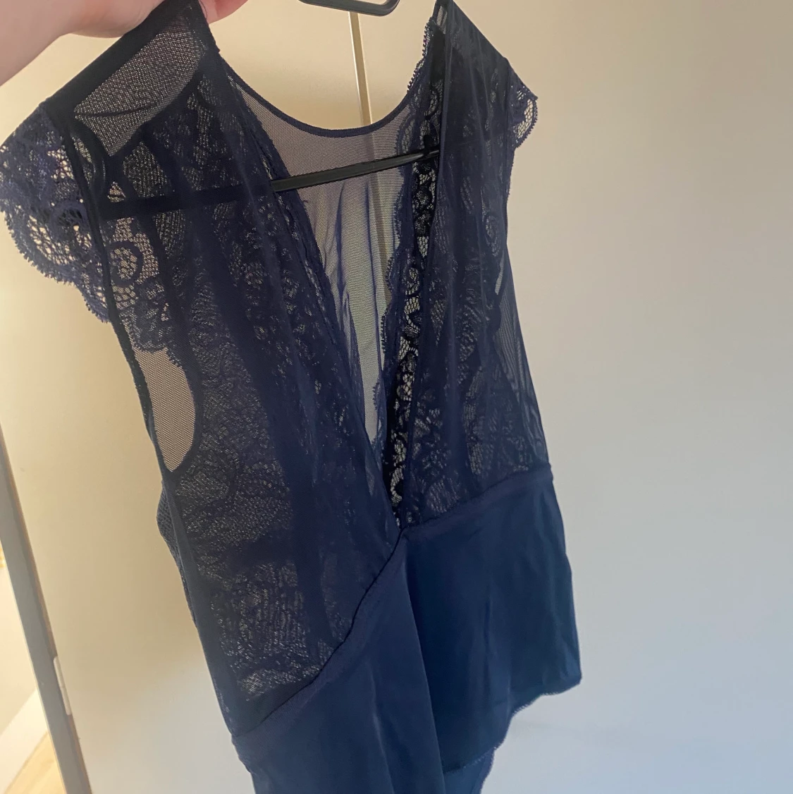 Säljer denna marinblåa bodyn med öppen rygg. Aldrig använd. Storlek S. 150kr + frakt 66kr