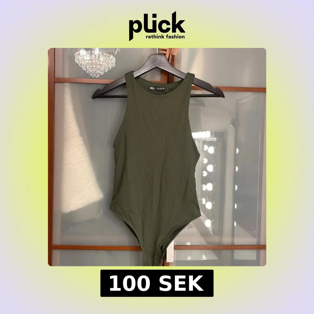Snygg olivgrön bodysuit från Zara med hög hals och ärmlös design. Perfekt att styla med jeans eller kjol för en clean och modern look.