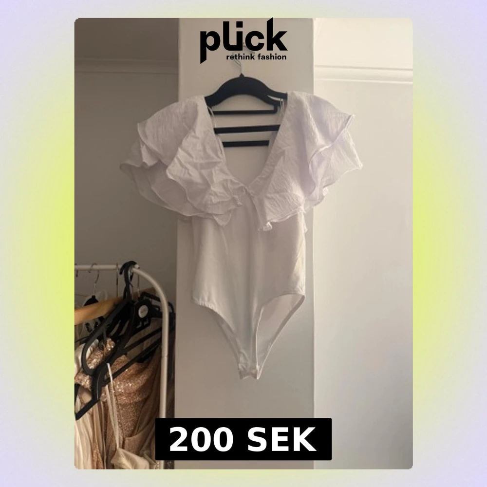 Supersnygg vit body från Zara med stora volangärmar och djup v-ringning.