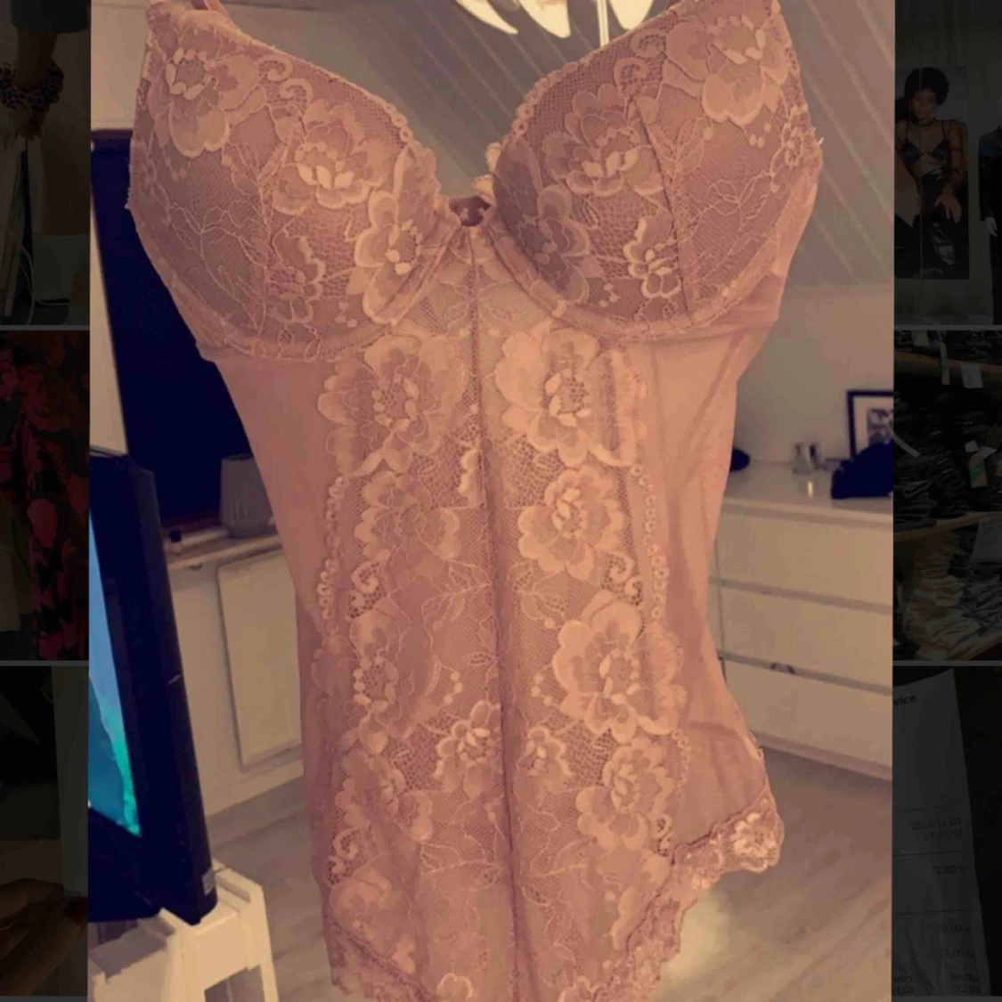 Push up-body i spets med string bak. Bodyn har bygel och formpressade, vadderade kupor. Smala, reglerbara axelband. Storlek: 36 Säljer den pågrund av att den är för liten. Aldrig använd.