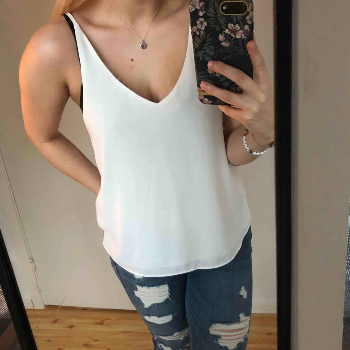 Linne från Bikbok med v-ringning, djupare i ryggen. Material som en blus vilket gör den lite festligare. Jätteskönt och simpelt linne som funkar till allt. Passar även S Köper du det vita också bjuder jag på frakten annars står köparen för frakt 🌸
