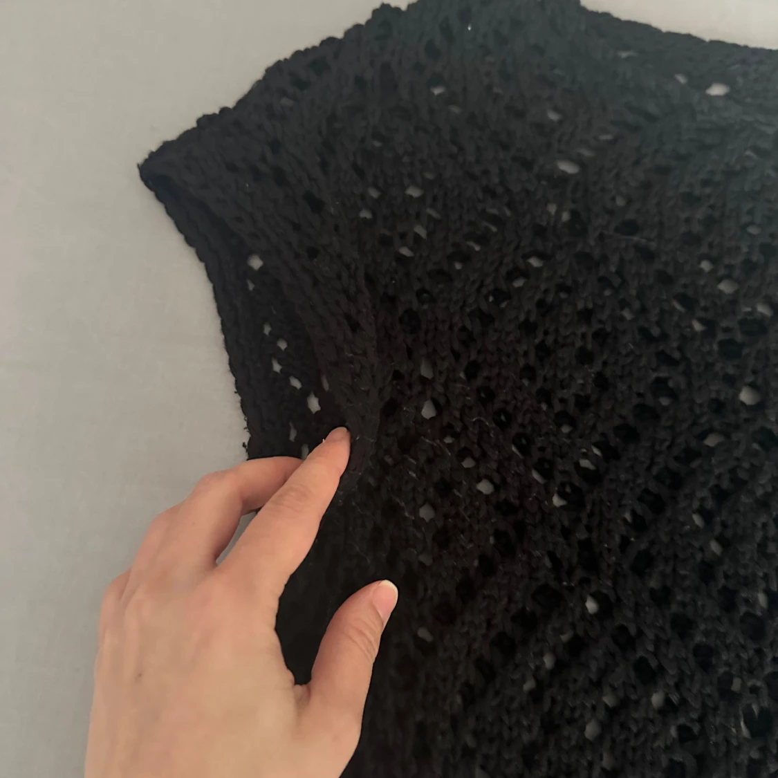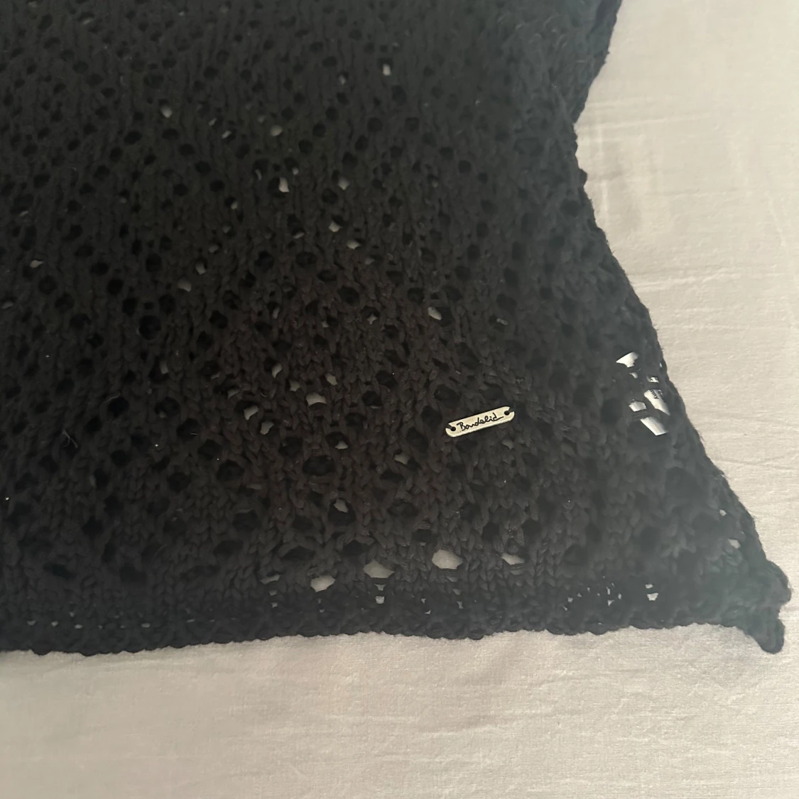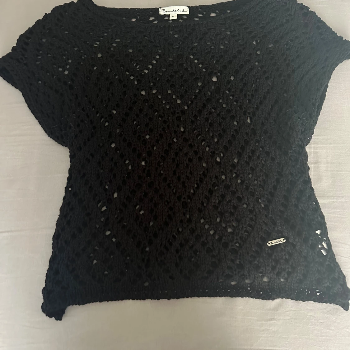 Svart virkad topp från Bondelid med korta ärmar och snyggt mönster i geometriska former. Toppen har en loose passform och är lätt transparent med en cool offshoulder-look. Perfekt att styla med jeans eller shorts för en chill vibe.