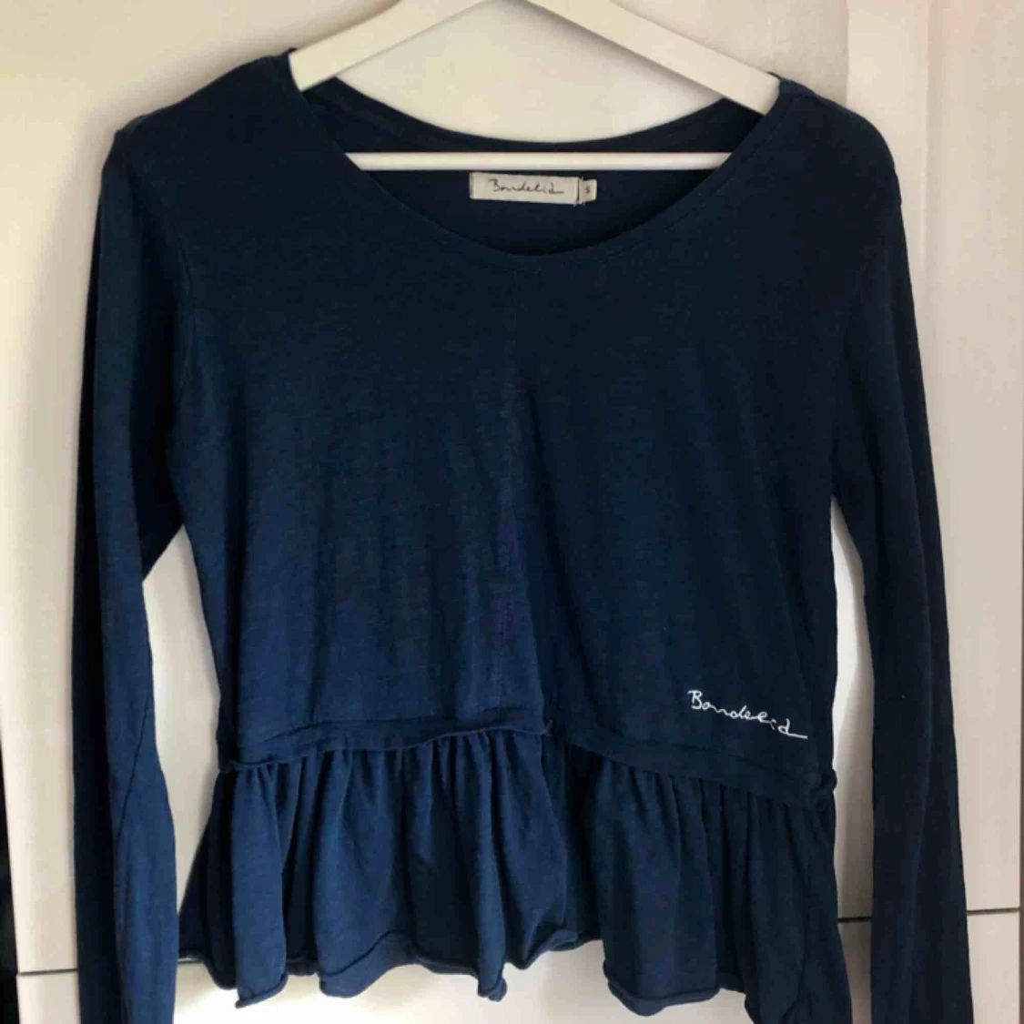 Marinblå långärmad peplum topp med märket bondelid. 50 kr + frakt. 🌸