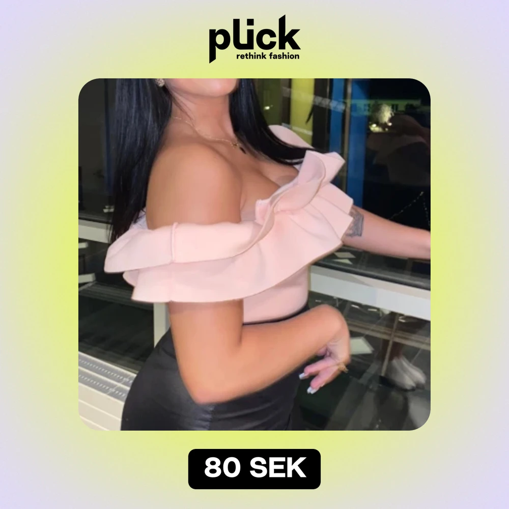 Säljer en superfin rosa bodysuit med offshoulder-design och volangdetaljer. Perfekt för festliga tillfällen!