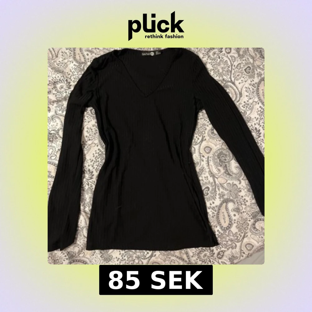 Säljer en svart ribbad långärmad topp från Boohoo med v-ringning. Toppen har en slim passform och är tillverkad i ett stretchigt material som sitter snyggt på kroppen. Perfekt att styla med jeans eller kjol. Tröjan har en uppklippt del på sidorna.