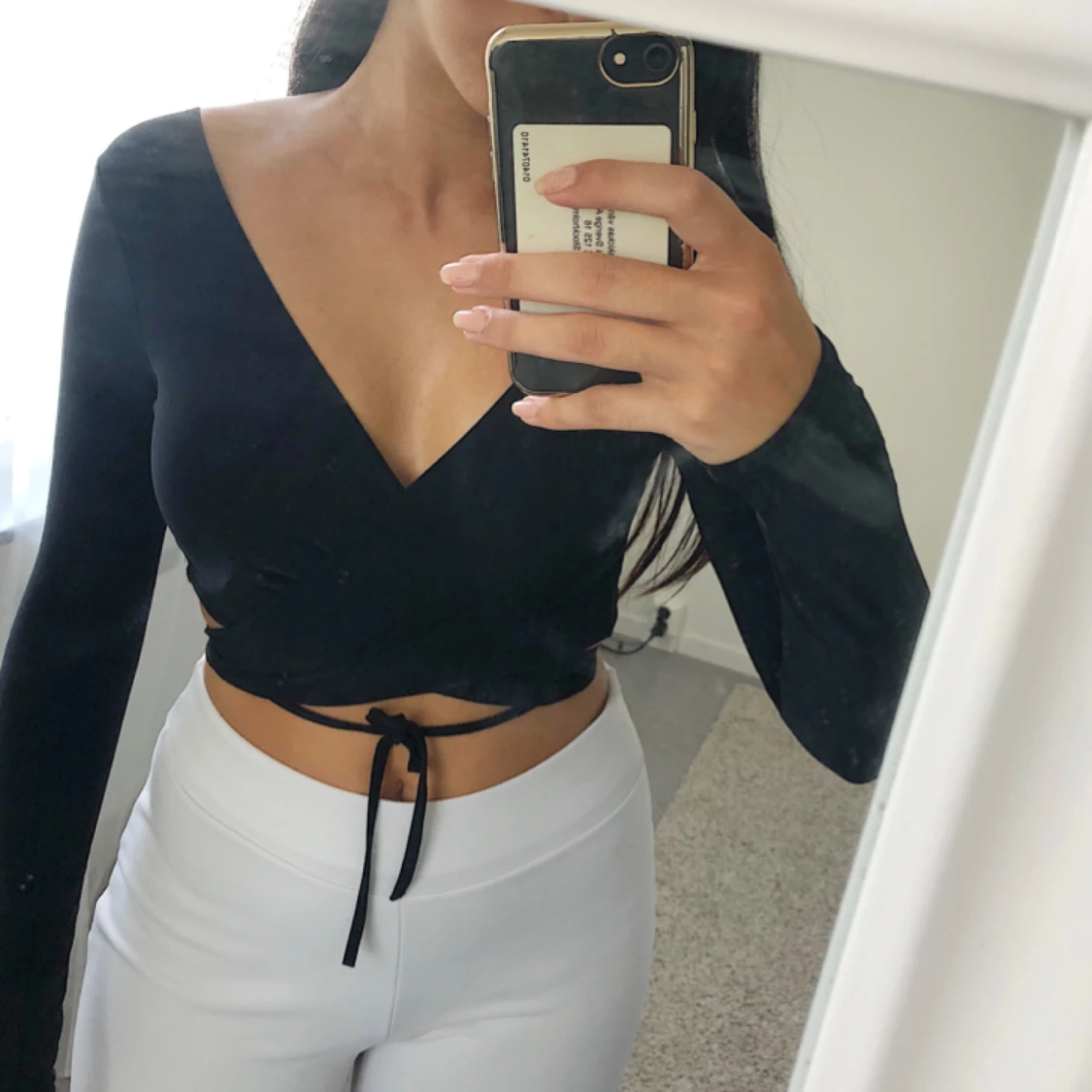 Tröja från boohoo använd endast en gång. Man knyter tröjan runt sig, man kan ha rosetten där bak om man vill :) Pris: 80kr + 39kr frakt