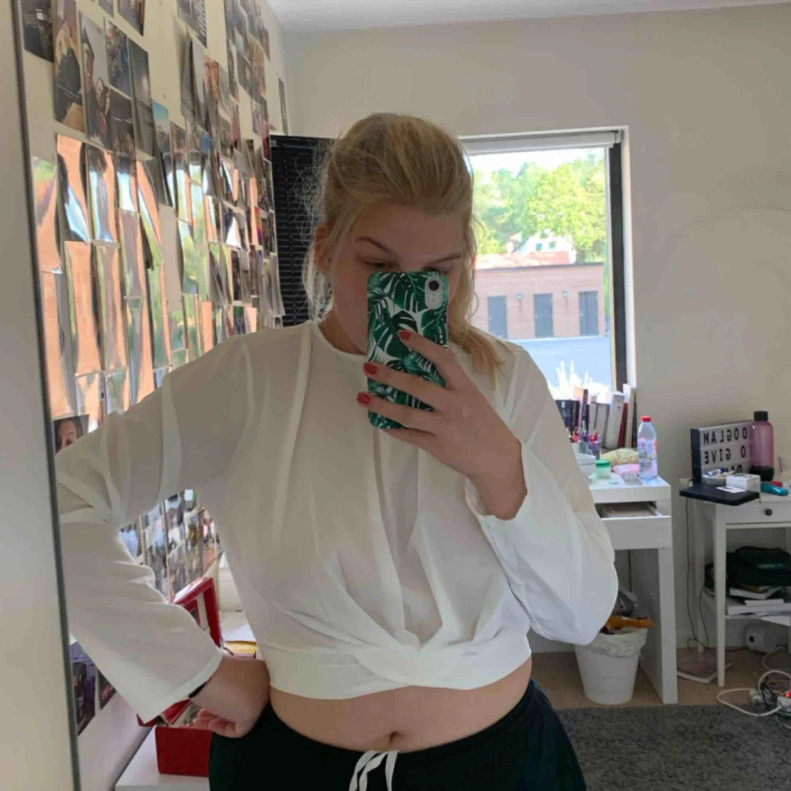 Vit topp med öppen ryggsom man knyter nere, långa ärmar. Från boohoo, men tycker den är lite liten för mig så därför jag säljer den. Köparen står för frakt för 20 kr!