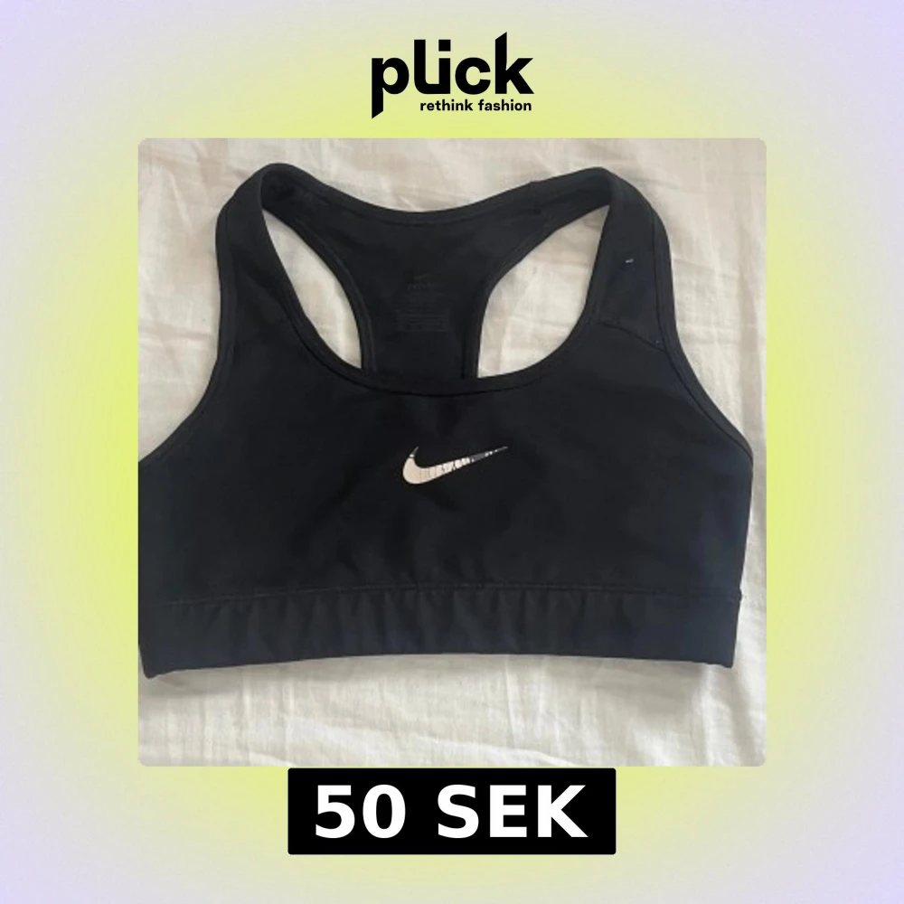 Säljer en svart sporttopp från Nike med Dri-FIT-teknologi. Toppen har en klassisk design med brottarrygg och är perfekt för träning. Säljer även en i svart och vit mönstrad för 75 och om du är intresserad kan du köpa båda för 100kr