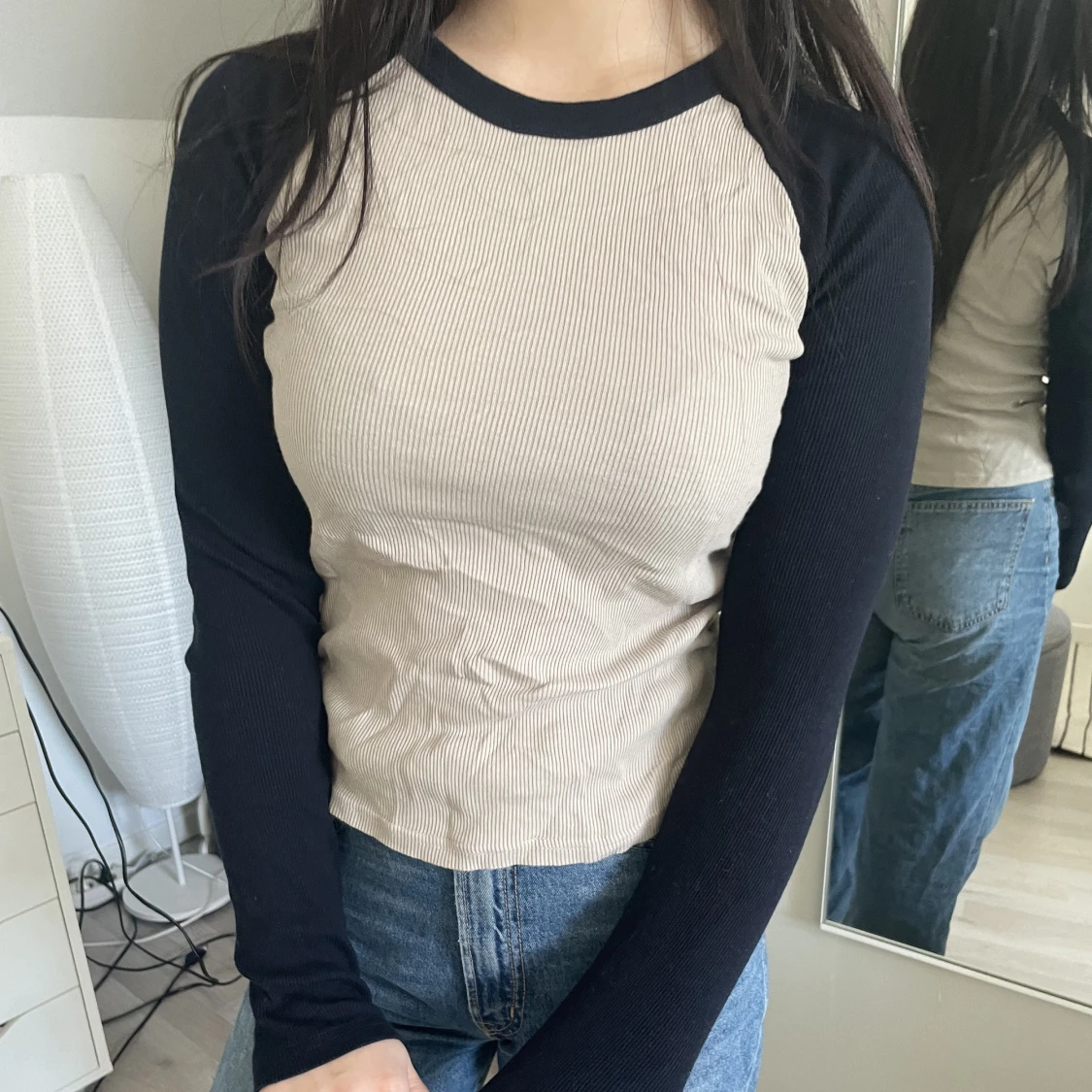 Långärmad tröja från brandy Melville (Bella top) med marinblå sleeve och beige mitten